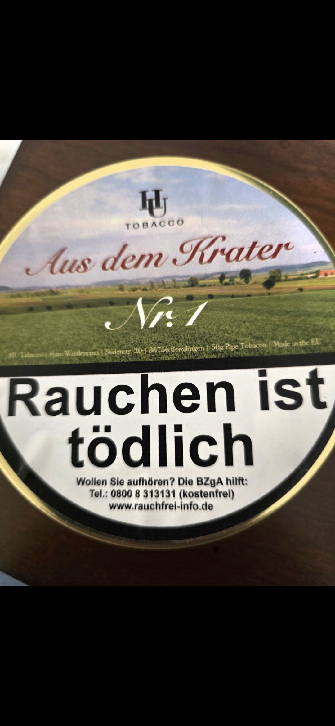 One new sealed 50g tin of HU Aus dem Krater Nr. 1. This blend is bold and fantastic. Virginia/Burley/Black Cavendish. Kept in a climate controlled environment.