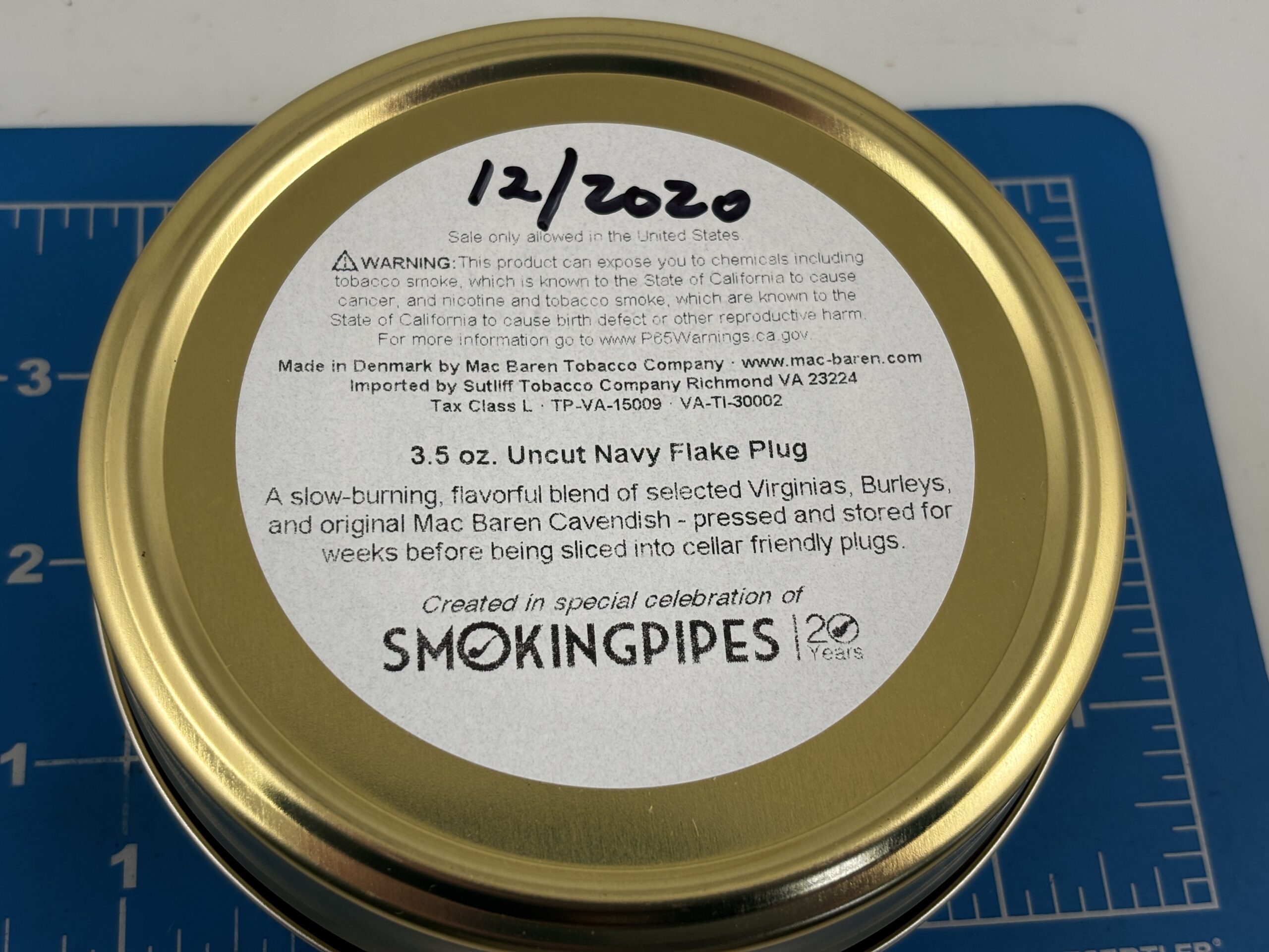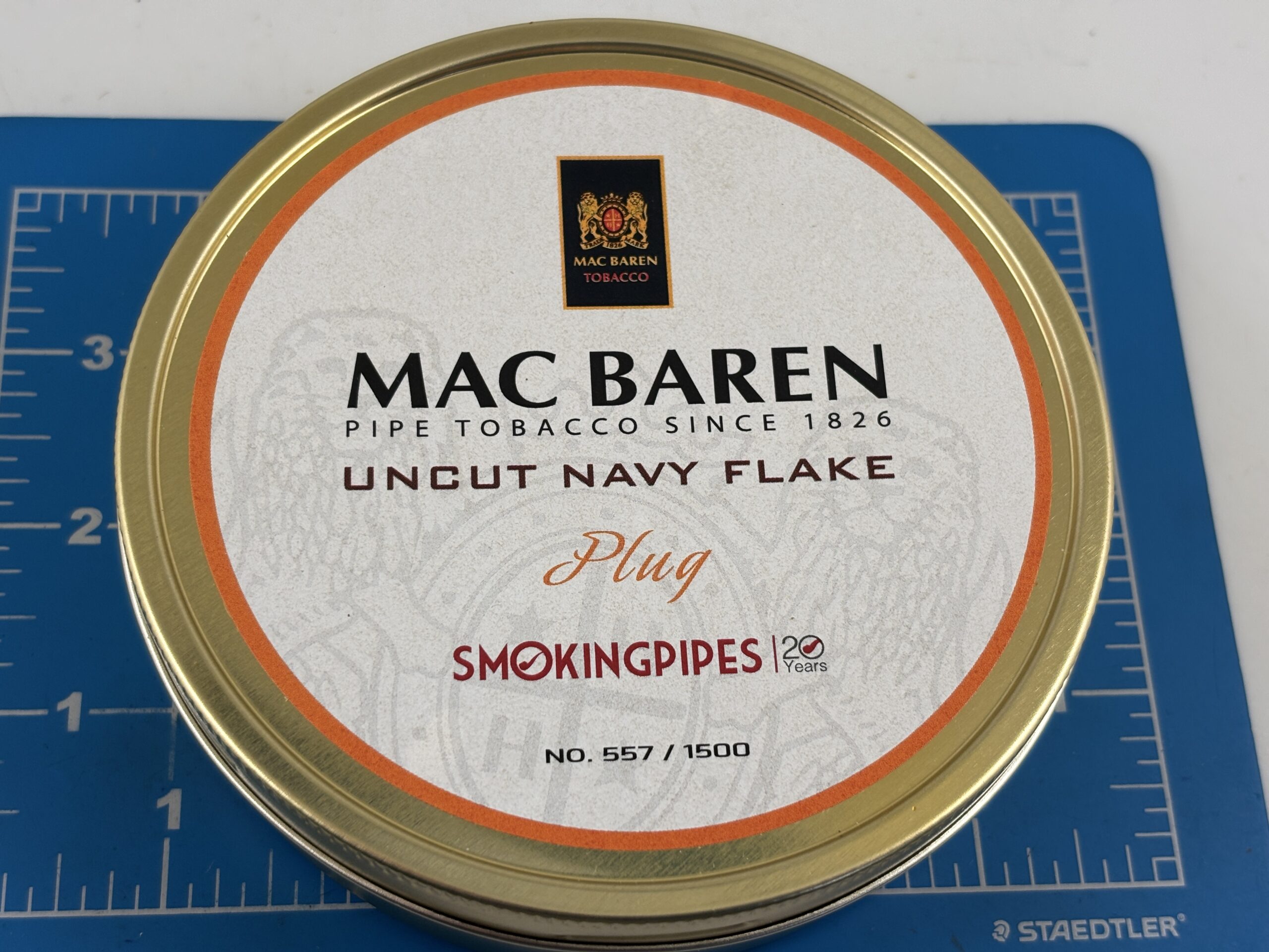 Excellent Sealed 2020 Mac Baren's Uncut Navy Flake Plug Limited Edition No. 557/1500 100g. Tin