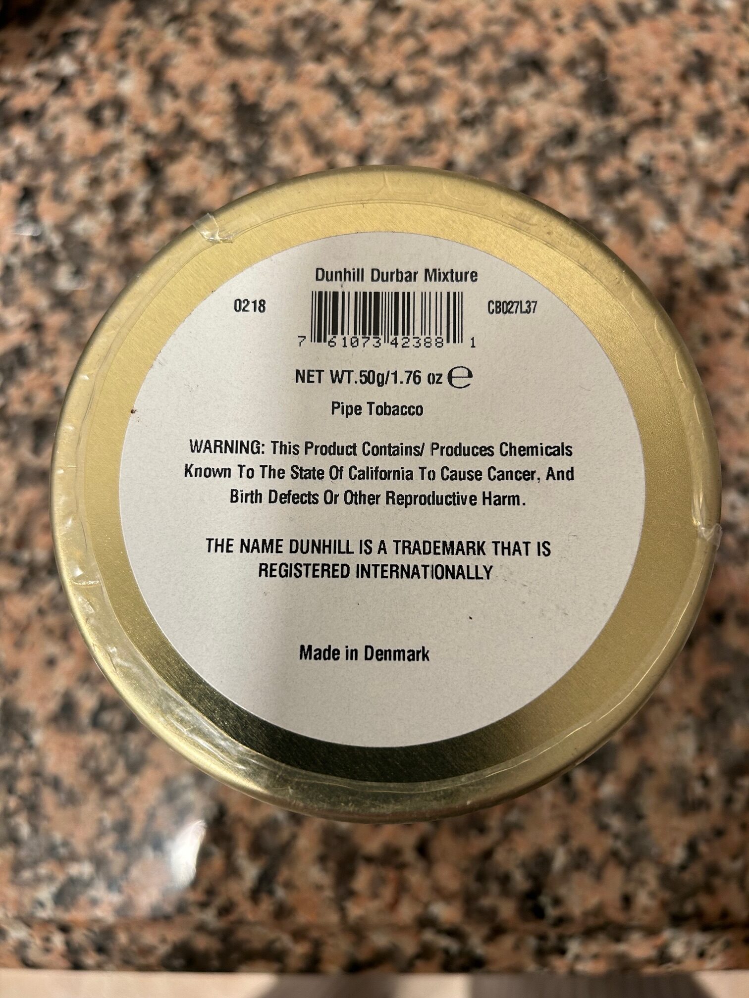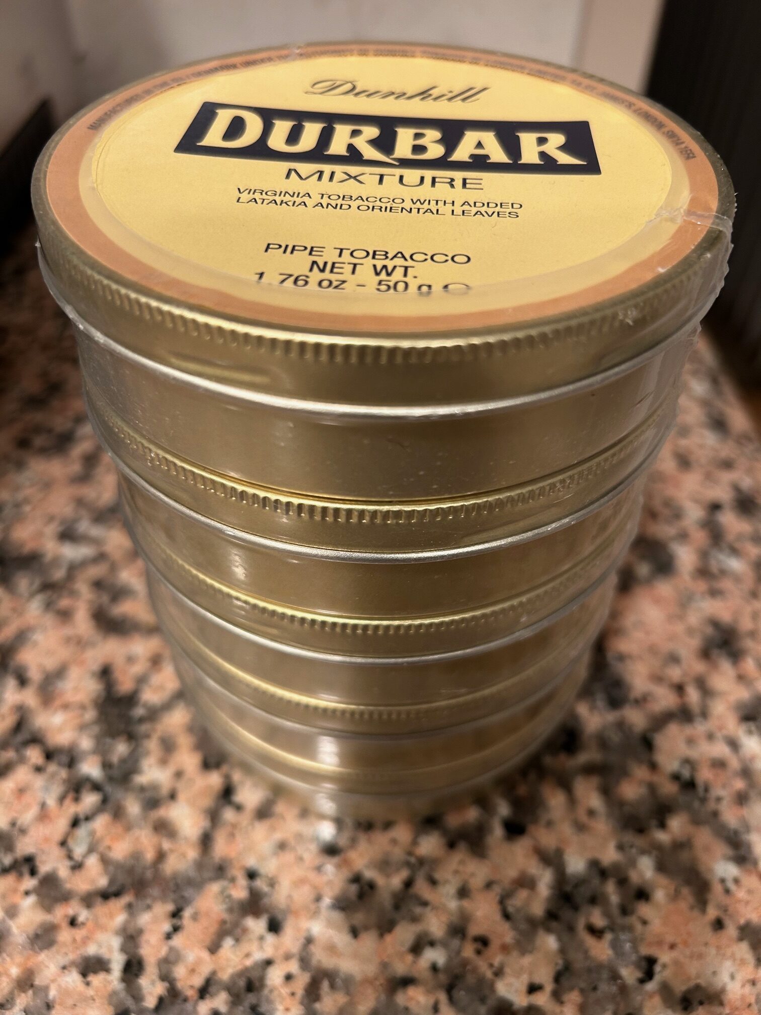 Up for your consideration are 5 Dunhill Durbar Mixture 50 gram tins in original manufactures sleeve. These tins are from my own personal temperature controlled cellar and we're also stored in totes.