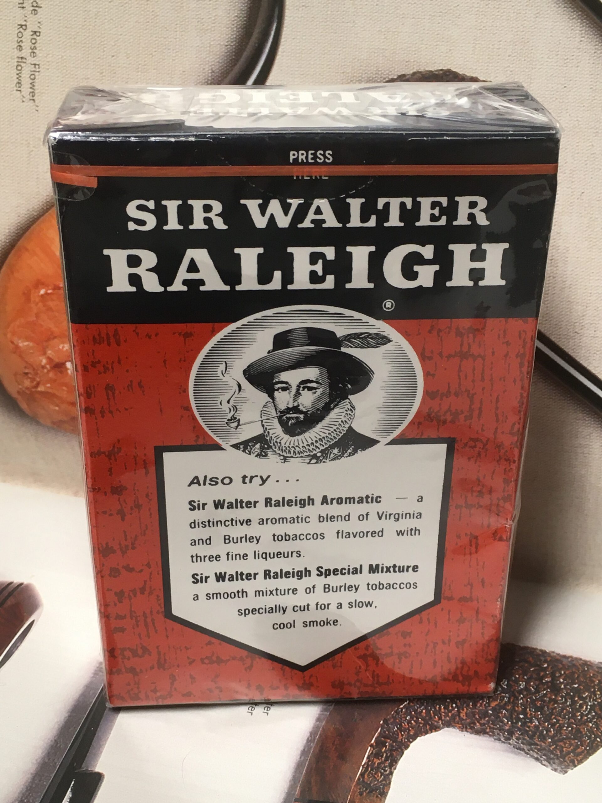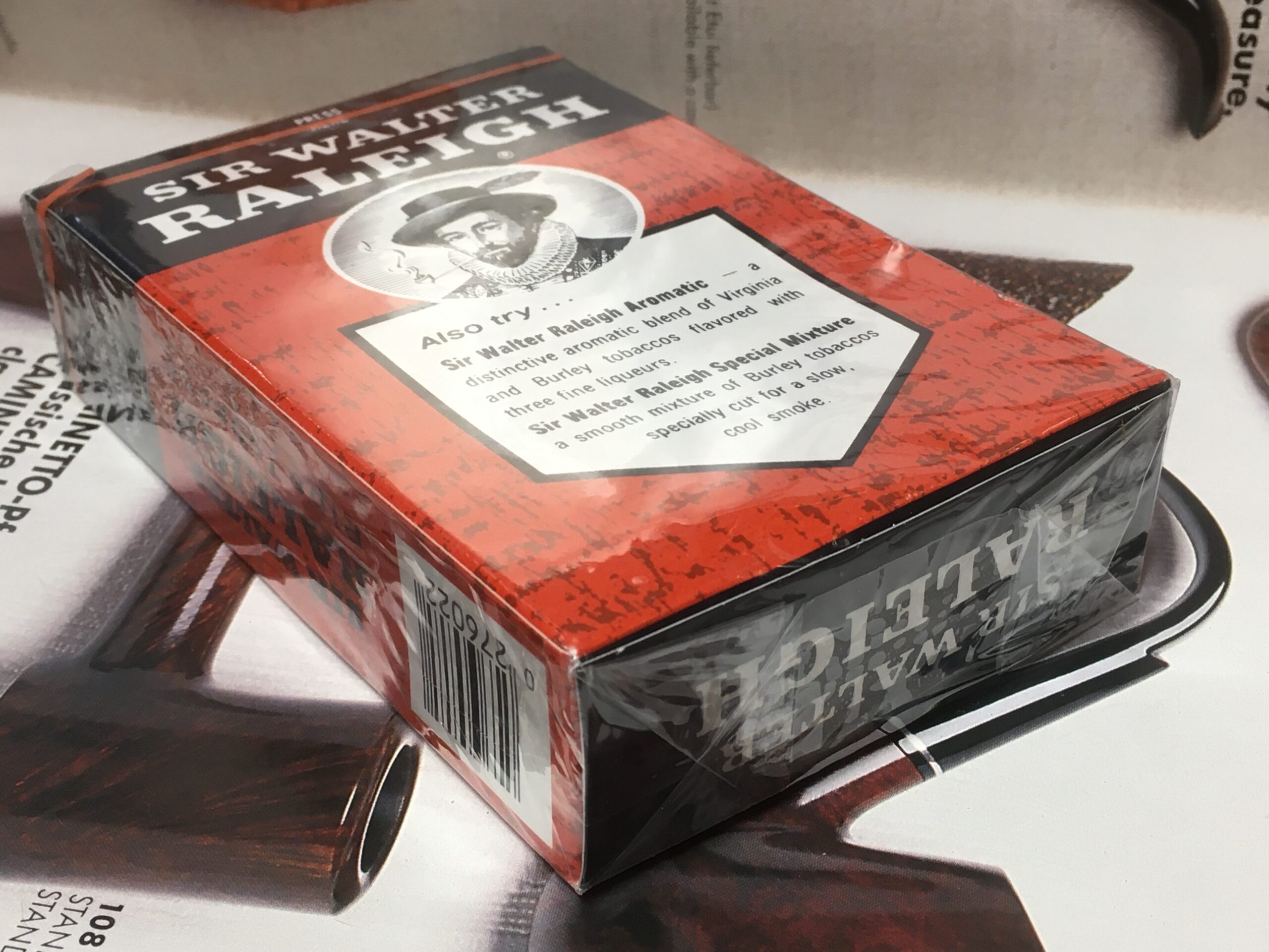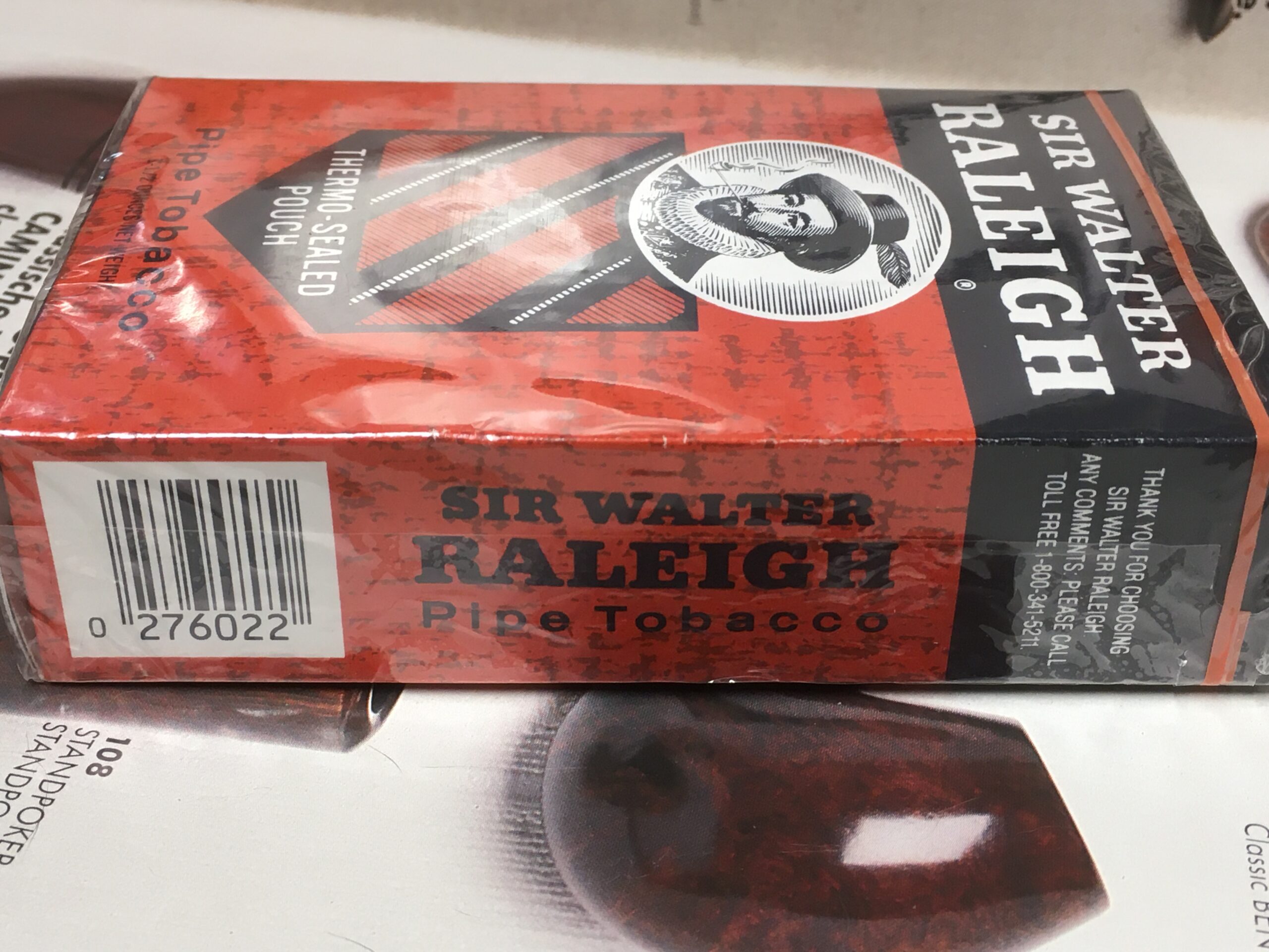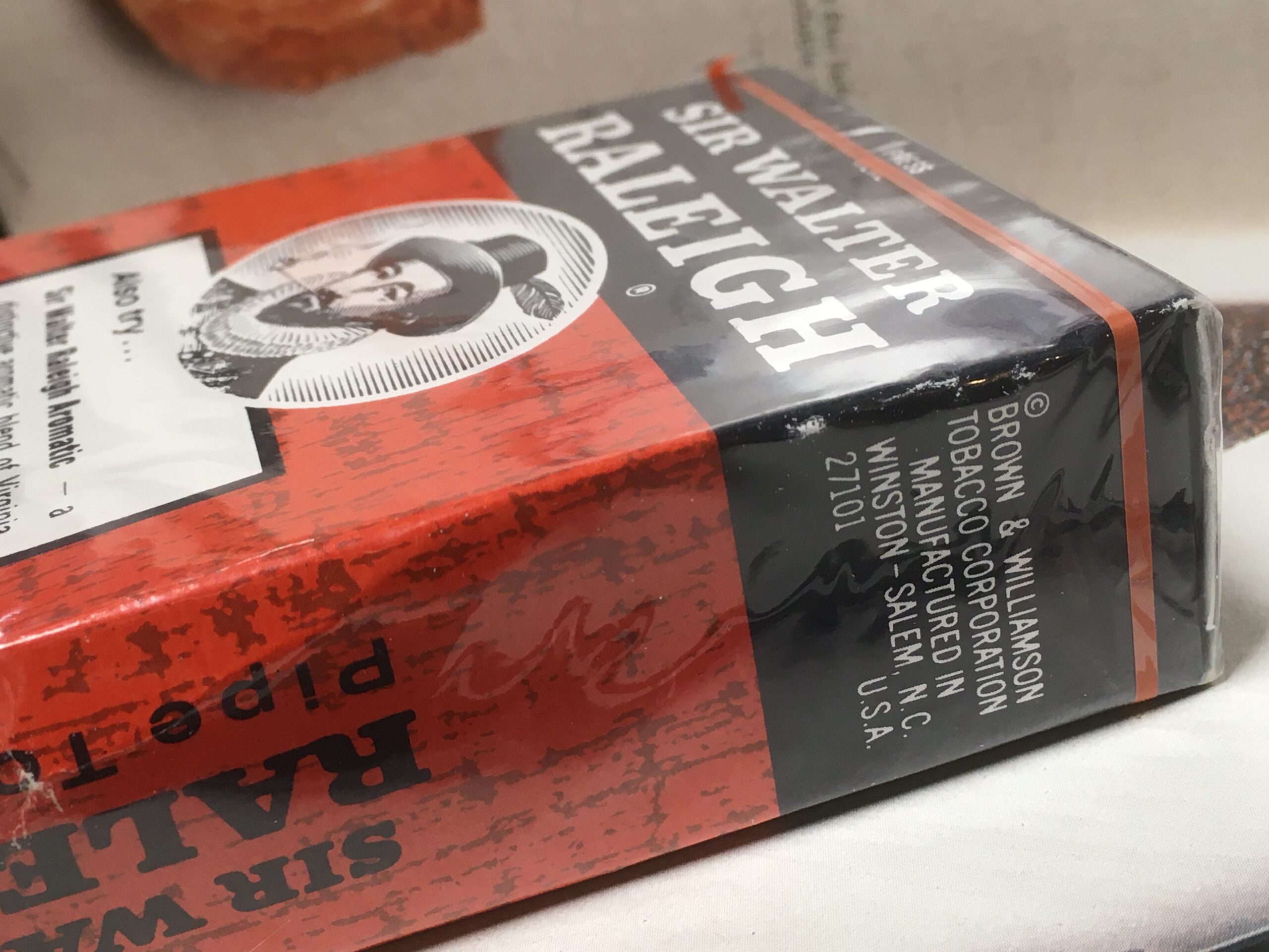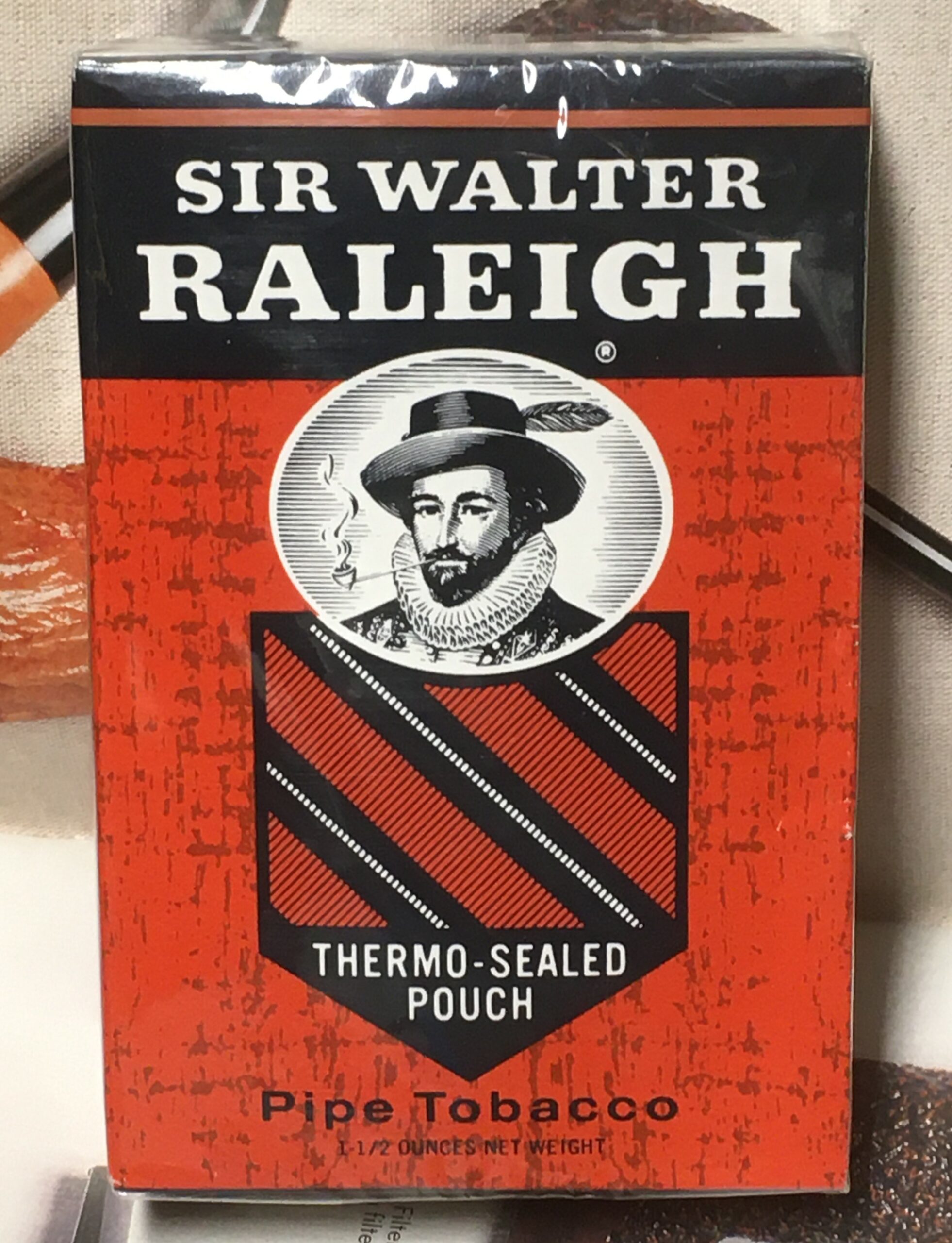 Vintage SIR WALTER RALEIGH Pipe Tobacco (1990s) 1 1/2 OUNCES NET WEIGHT, THERMO-SEALED POUCH (in clear plastic sealed box).