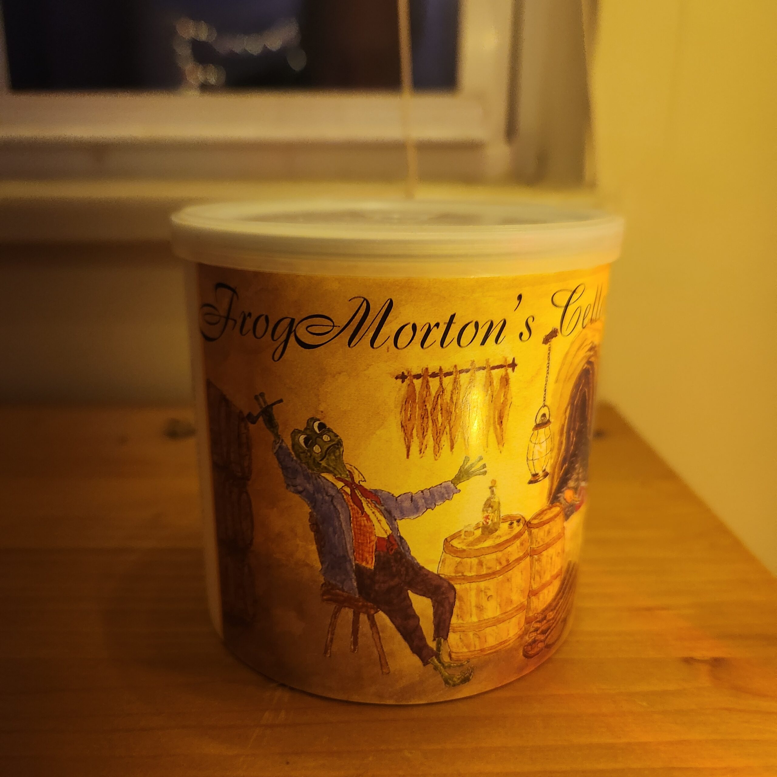This is a clean, sealed 2018 tin of Frog Morton Cellar from the final years of McClelland.