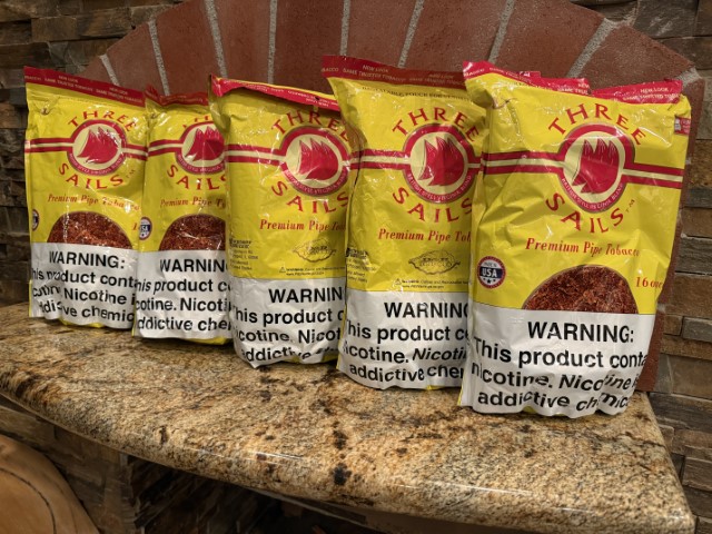 A light bodied, British style Virginia Blend. Special leaf selection and processing, and an extra-fine cut give this exceptional blend its unique character and elegance. An impressive presentation of color and appearance, and satisfying flavor and aroma makes Three Sails an unforgettable blend. contains 100% flue-cured Gold Leaf tobaccos with natural preservatives added.