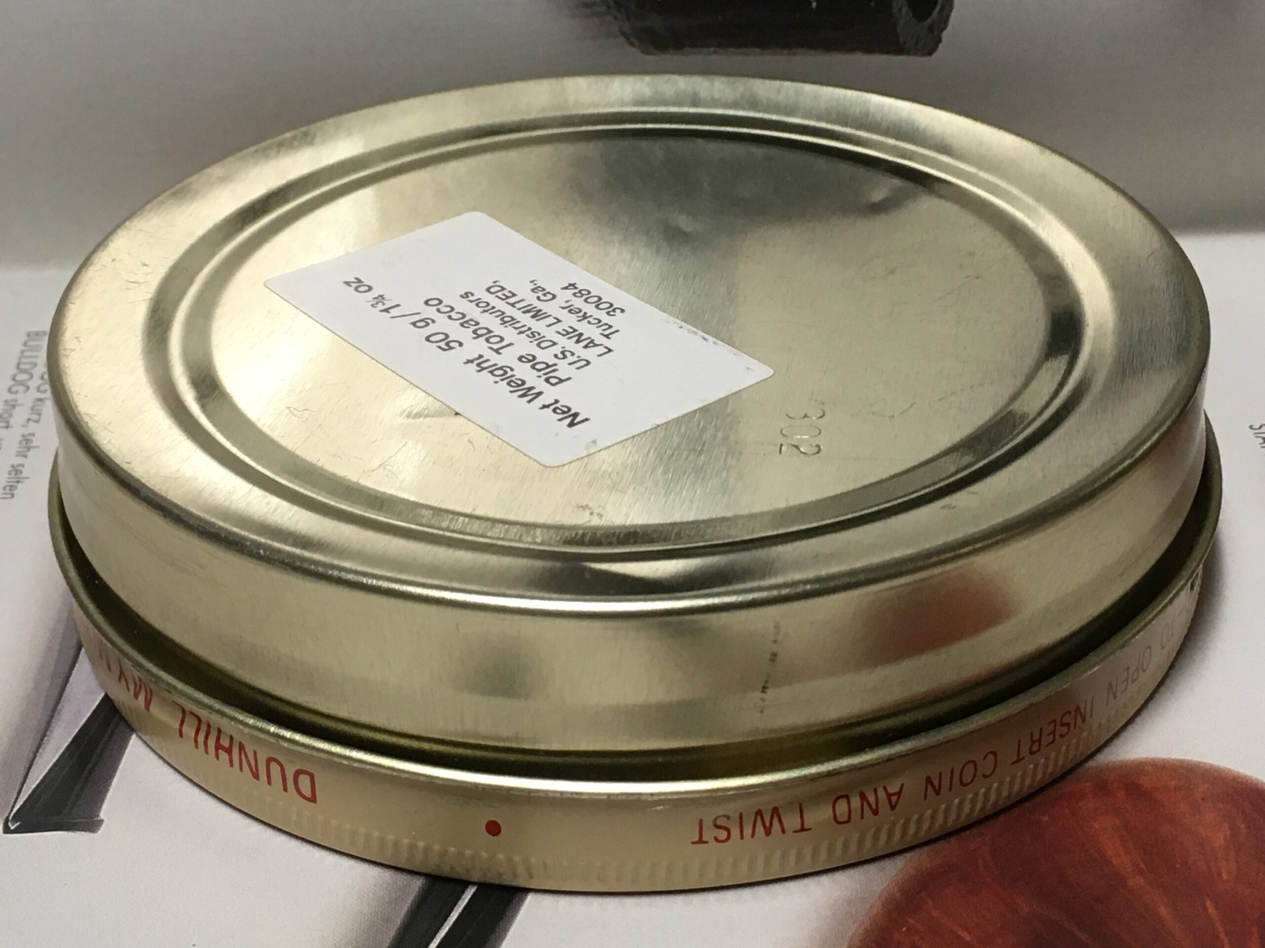 This has an older logo on painted lid, with "302" stamping underneath the tin, along with the ID decal reading, as follows: