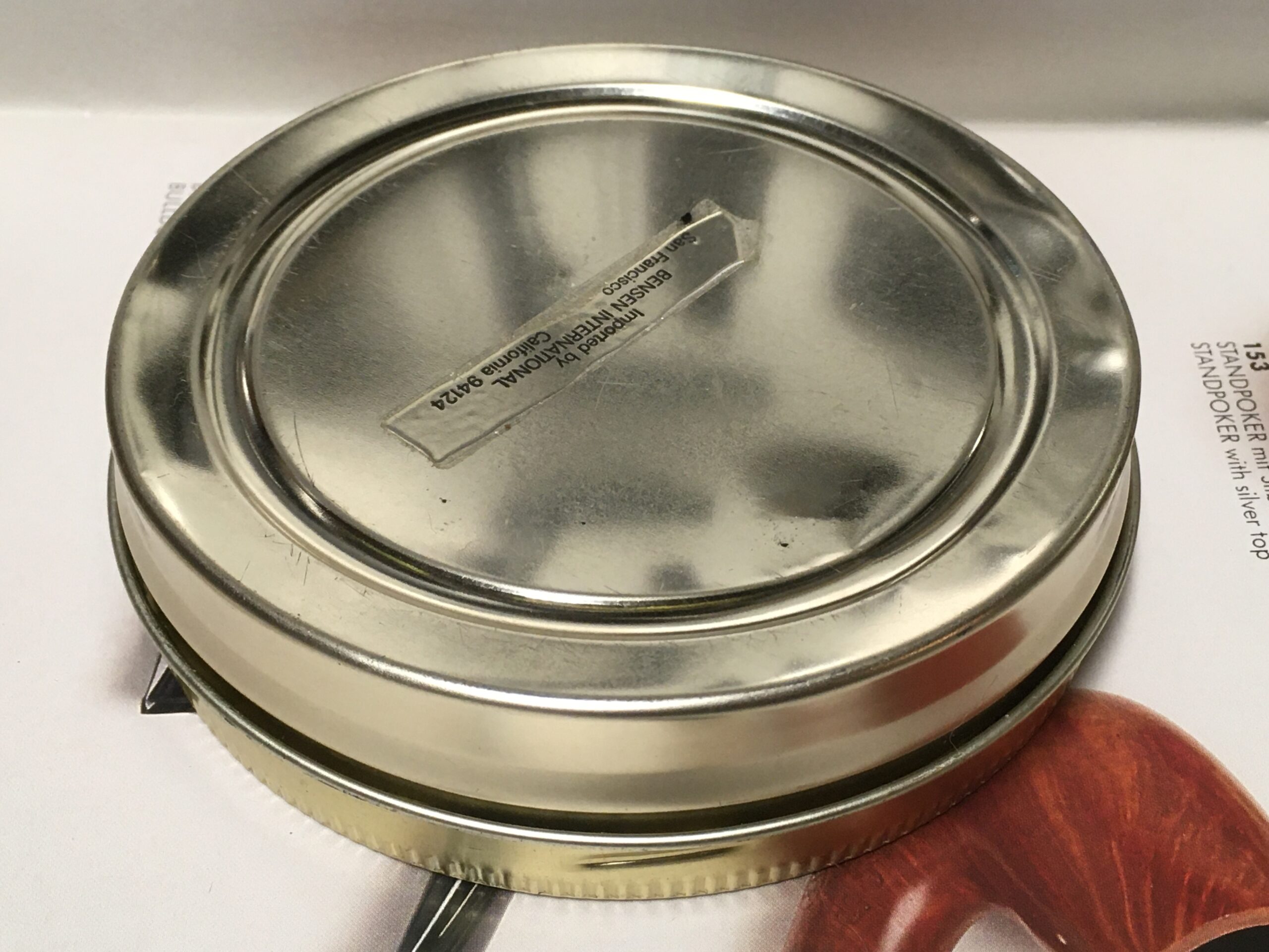 Tin was very well kept, with zero oxidation, rust, cracking, etc. Some shelf wear with light scratching and rub at the contact points. A few small dents in the container bottom.
