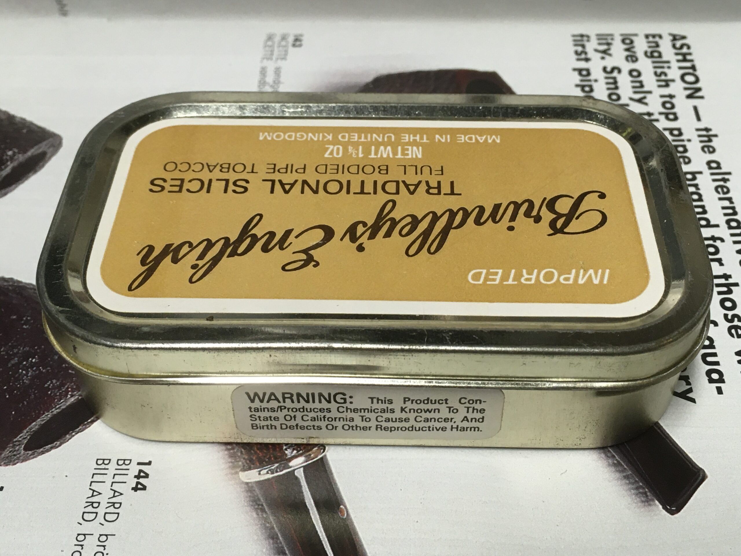 Vintage BRINDLEY'S ENGLISH, TRADITIONAL SLICES - Full Bodied Pipe Tobacco (1980s-1990s?) 1 1/4 OZ. - Sealed Tin
