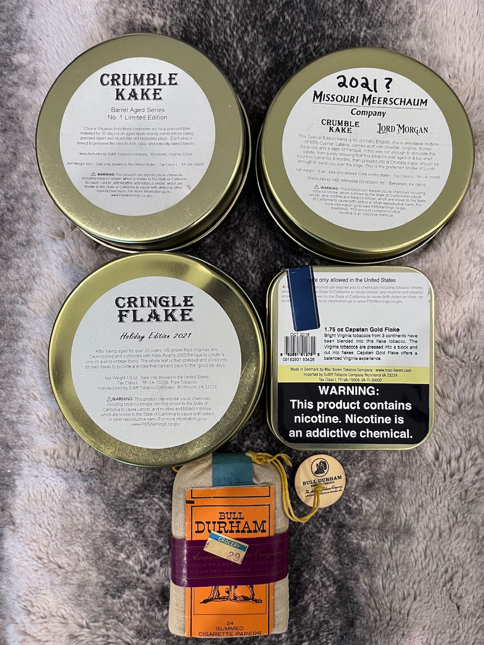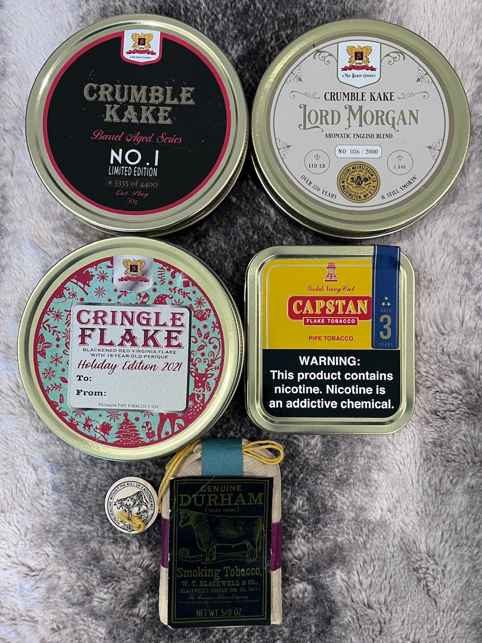 Cringle Flake, Aged Capstan, Crumble Kakes, and Bull Durham