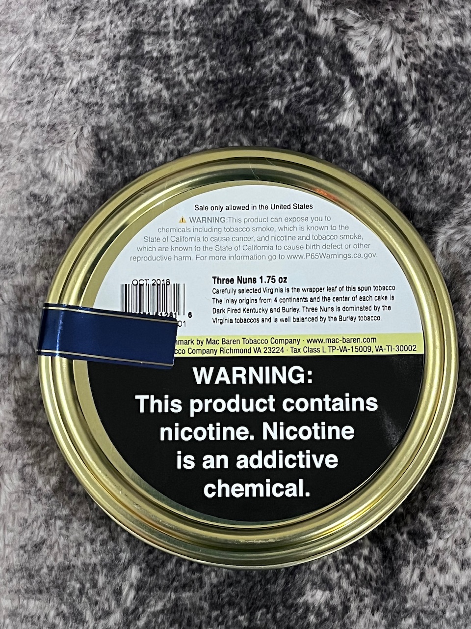 Three Nuns Yellow from Jun 2018 - 1 tin.