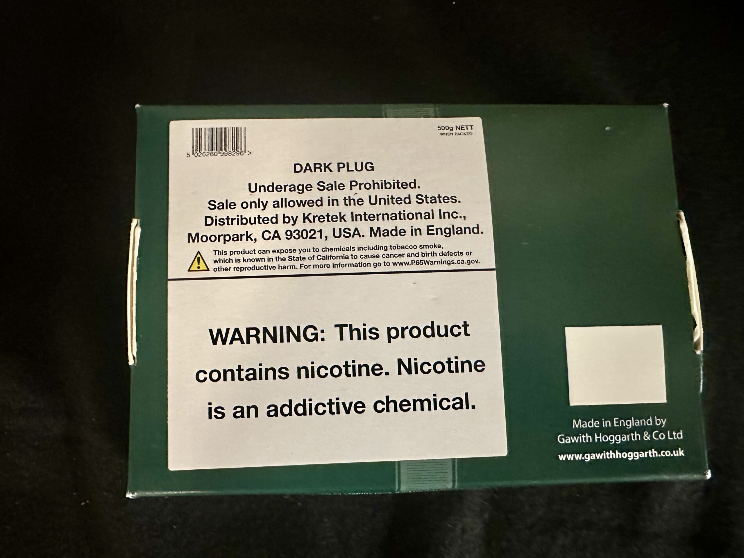 This auction is for a 500g box of 2019 Gawith Hoggarth Dark Plug. The box has been stored in Mylar since purchase.