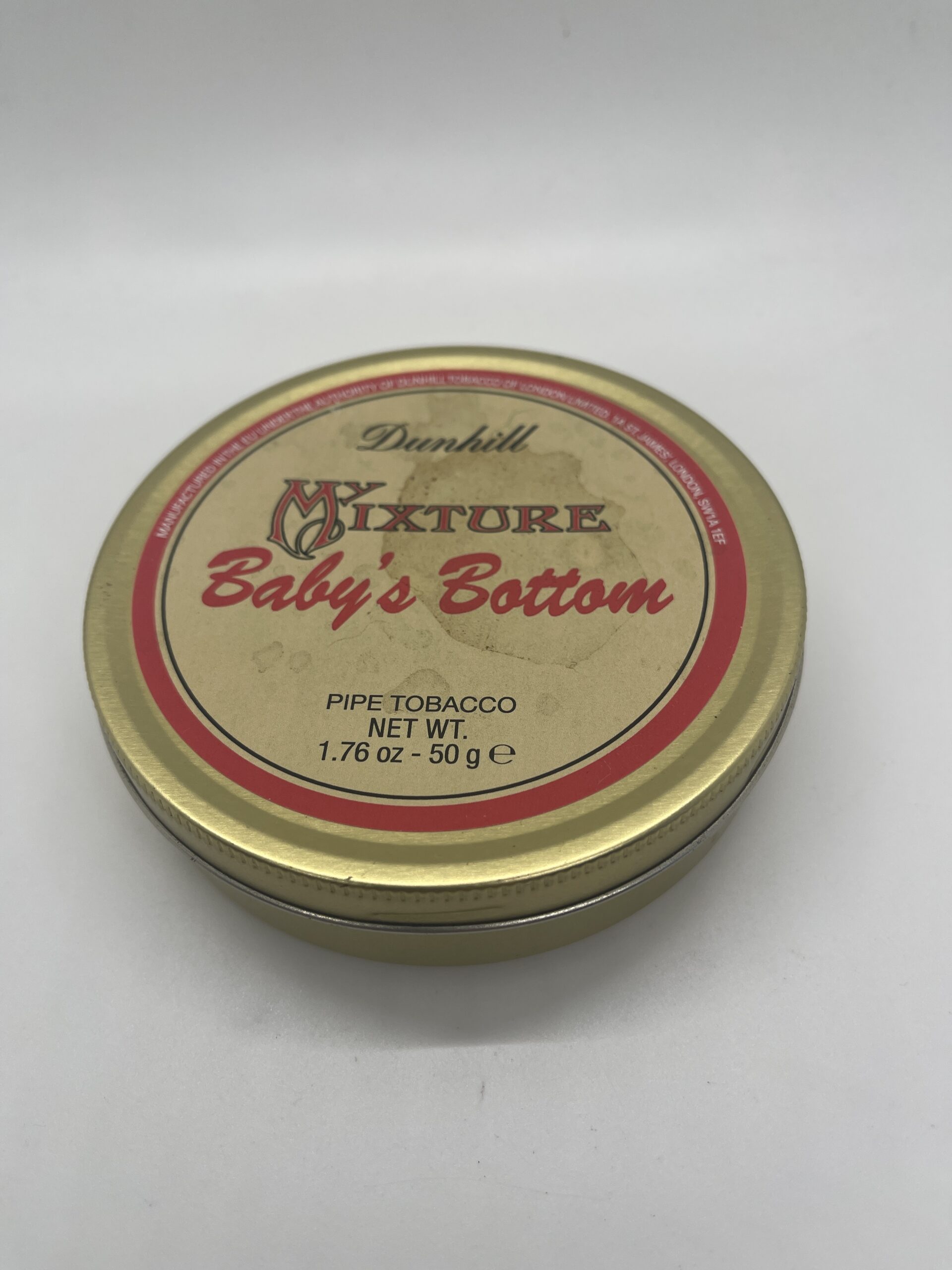 One sealed tin of Dunhill Baby’s Bottom circa 2015. Label has staining but tin is in like new condition.