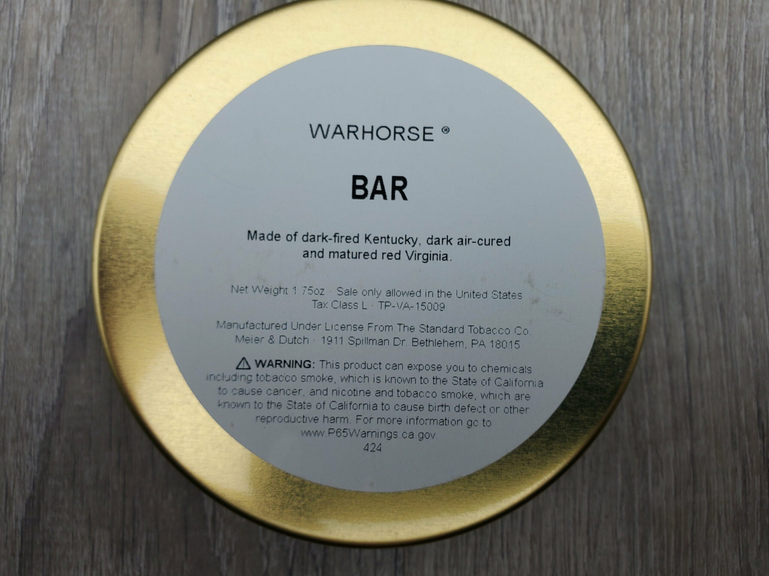 "War Horse Bar is a plug tobacco made in the tradition of the long-missing Irish tobacco. Made of darker, earthier leaf, War Horse Bar has a singular top note added, and the tobacco is pressed and cut into plugs. The flavor and body are astoundingly stout, and is definitely meant for the experienced pipe enthusiast. If you love robust and bold pipe tobacco, War Horse Bar is for you."