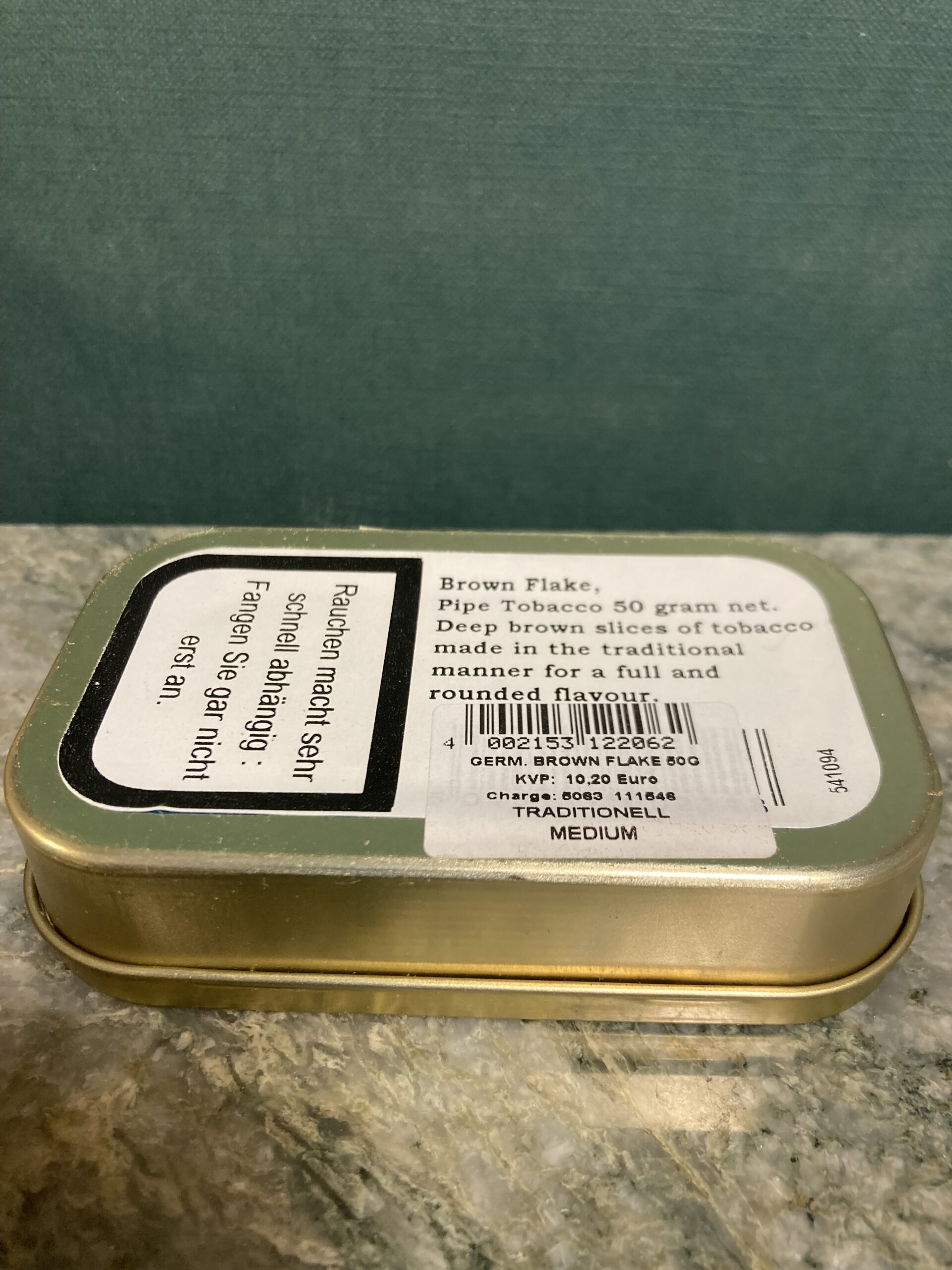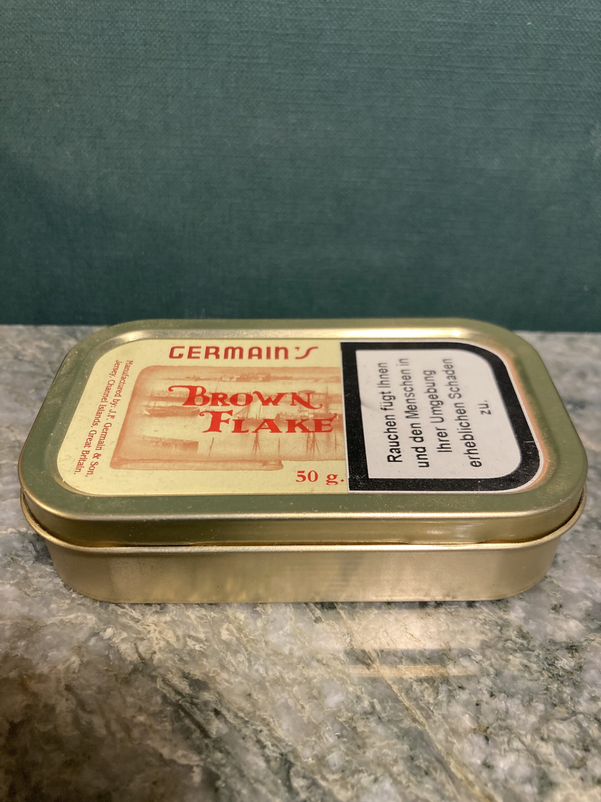 Germain’s Brown Flake 50g unopened tin, was purchased 2016-2017 if I remember correctly.