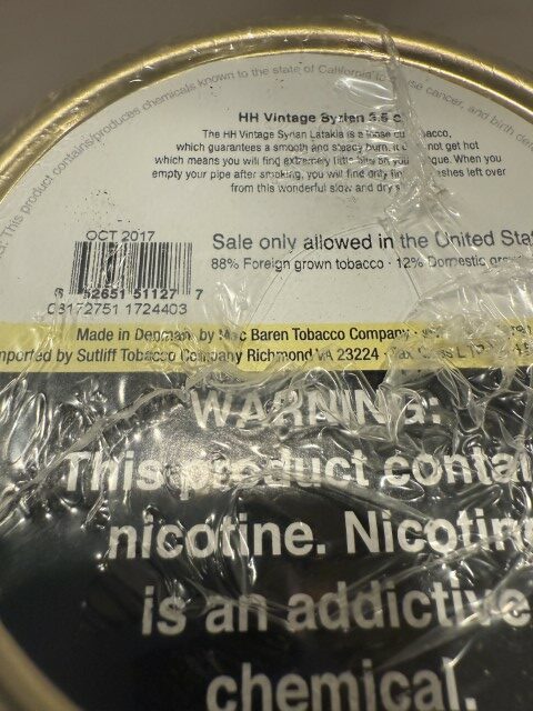 Notes: Introduced in 2006 as HH Vintage Syrian Latakia. Discontinued in 2017 when the stock of Syrian latakia ran out.