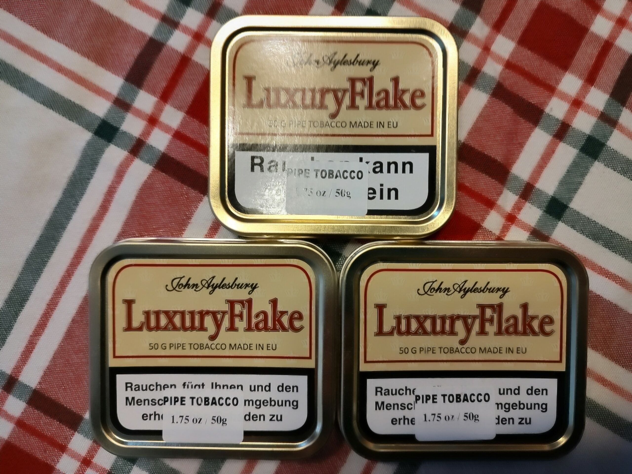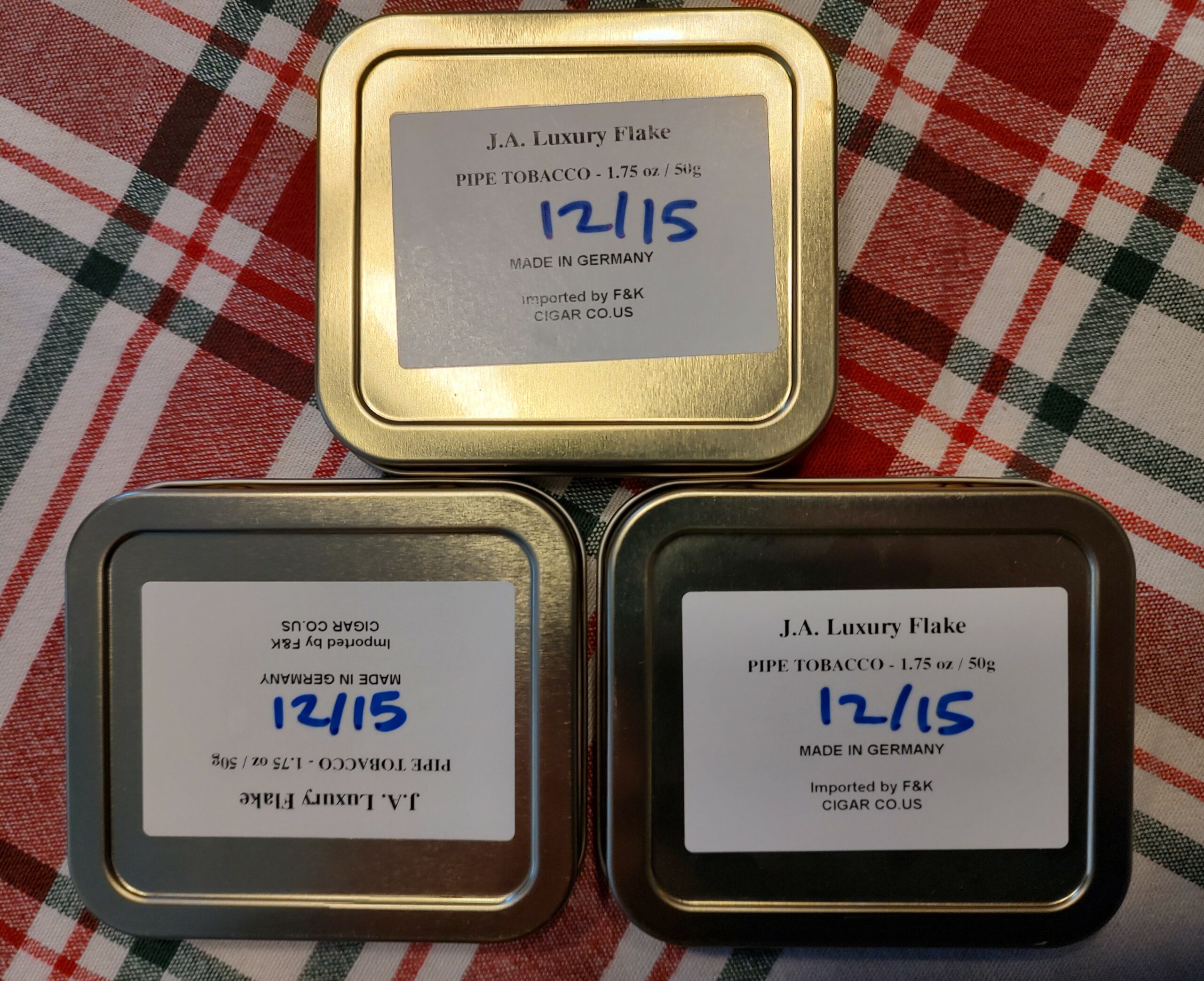 This auction is for three (3) sealed tins of John Aylesbury Luxury Flake from 2015.