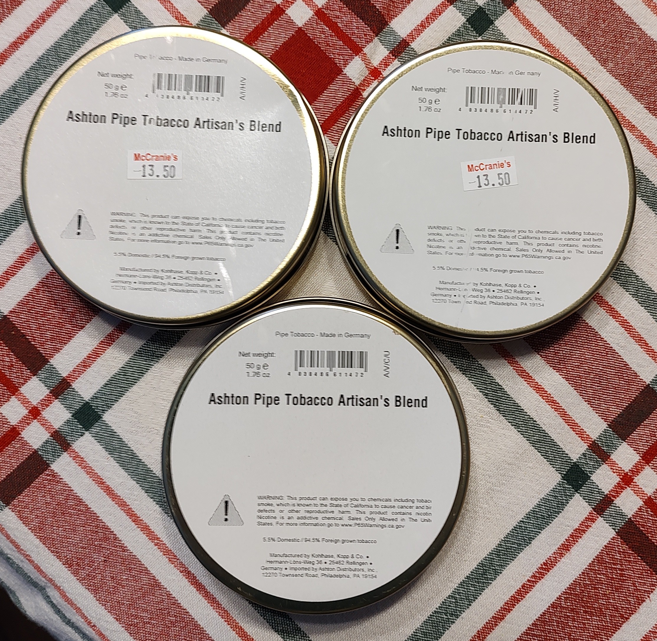 This auction is for three (3) sealed tins of Ashton Artisan's Blend (2020).