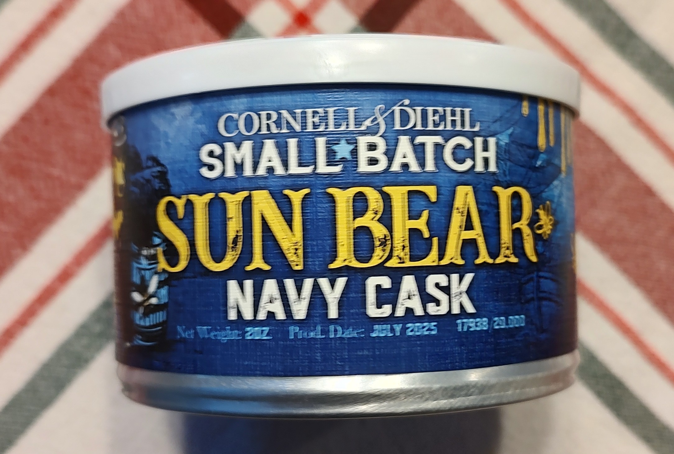 This auction is for one (1) sealed tin of Sun Bear: Navy Cask by Cornell & Diehl.