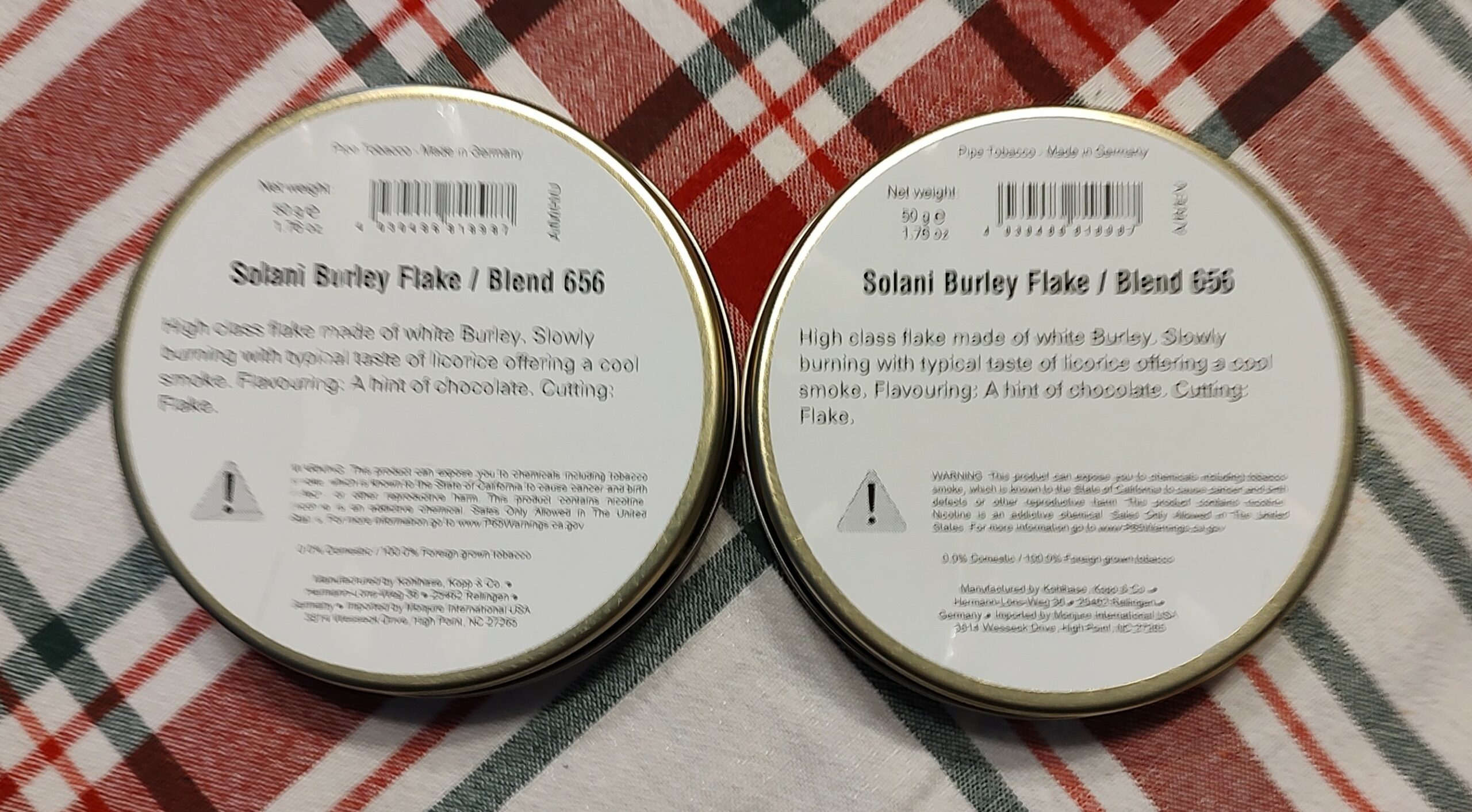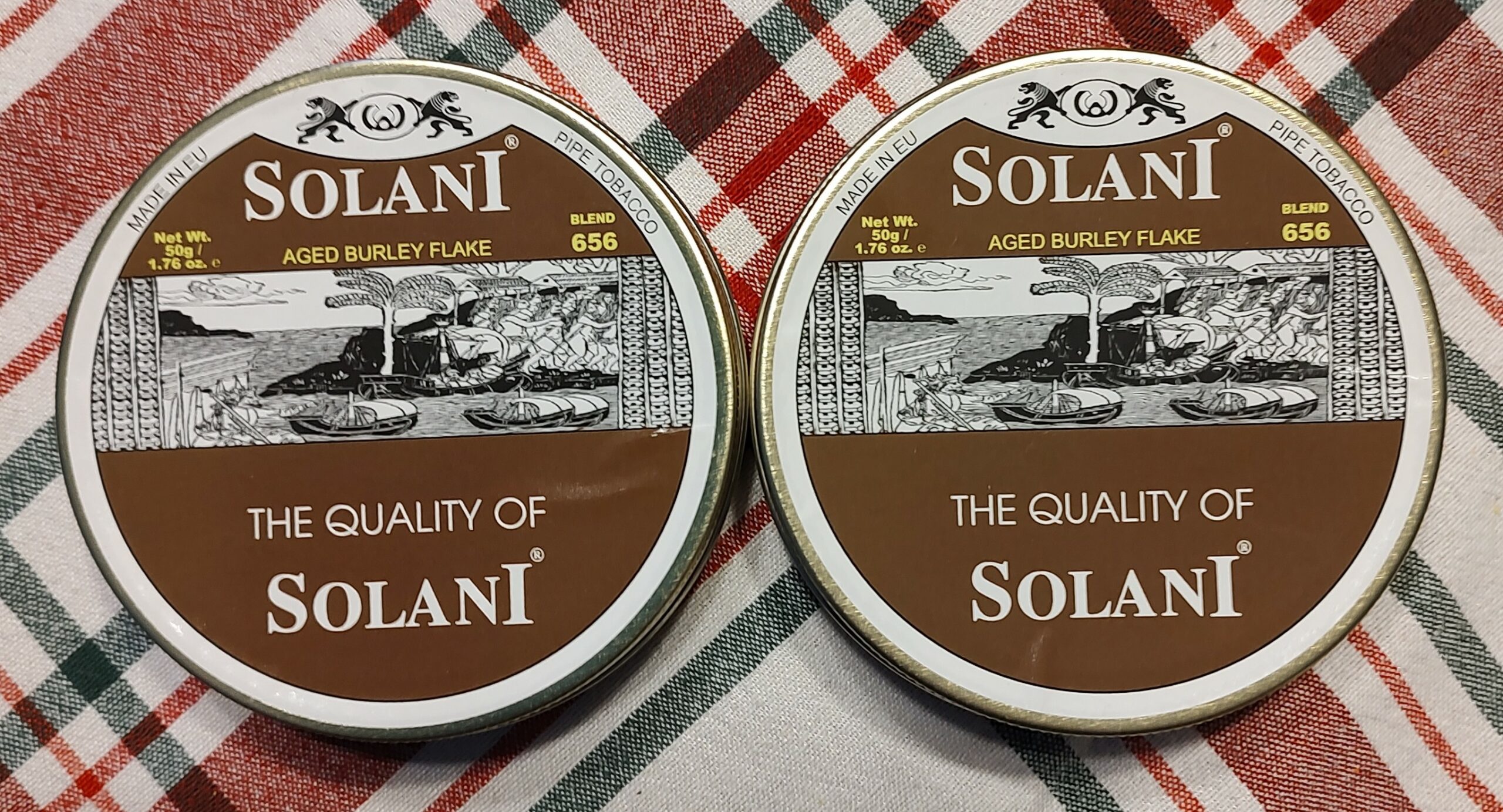 This auction is for two (2) sealed tins of Solani 656 Aged Burley Flake (2020).