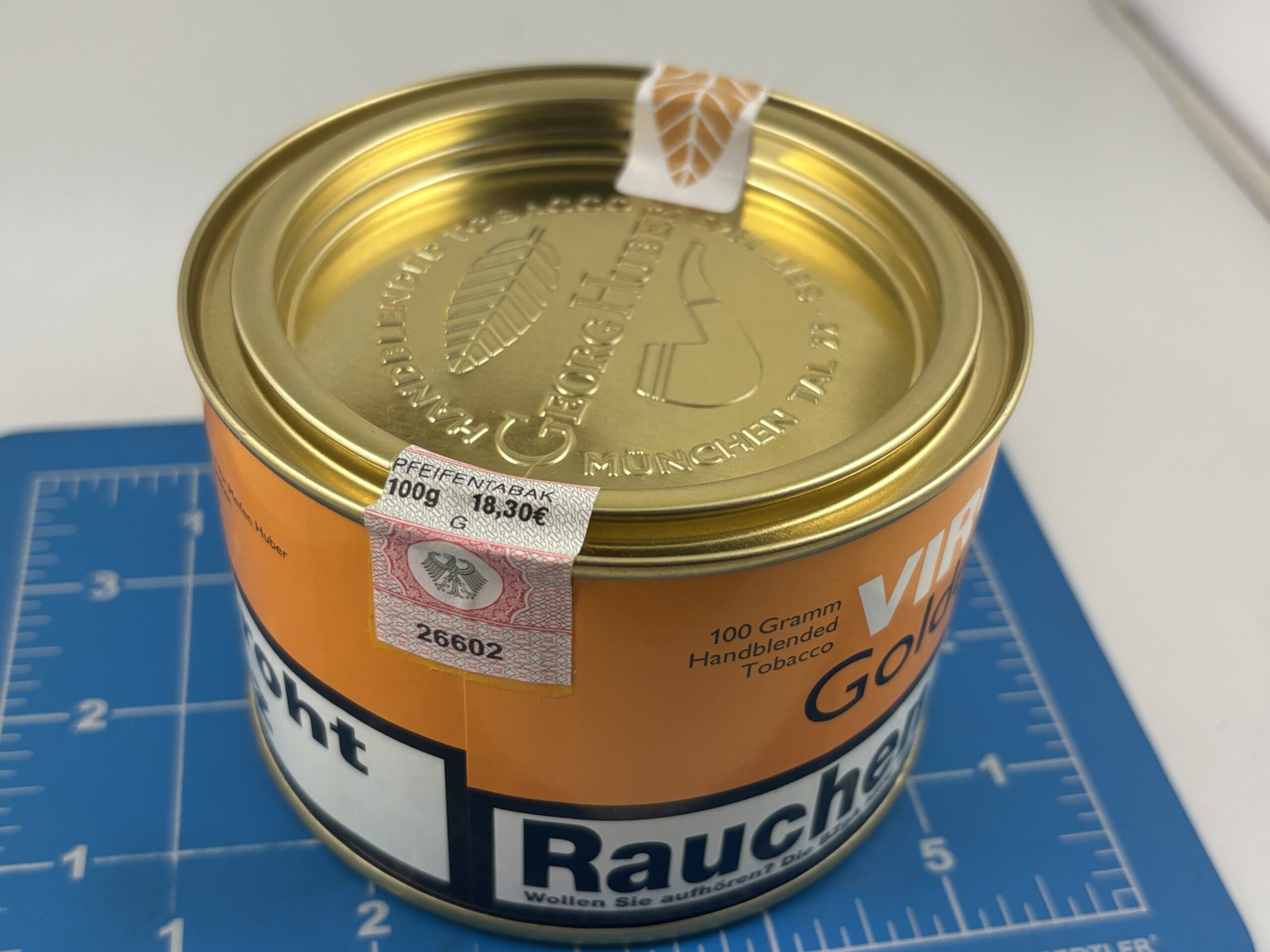 Excellent Sealed 2021 Georg Huber Virginia Golden Flake 100g. Tin.