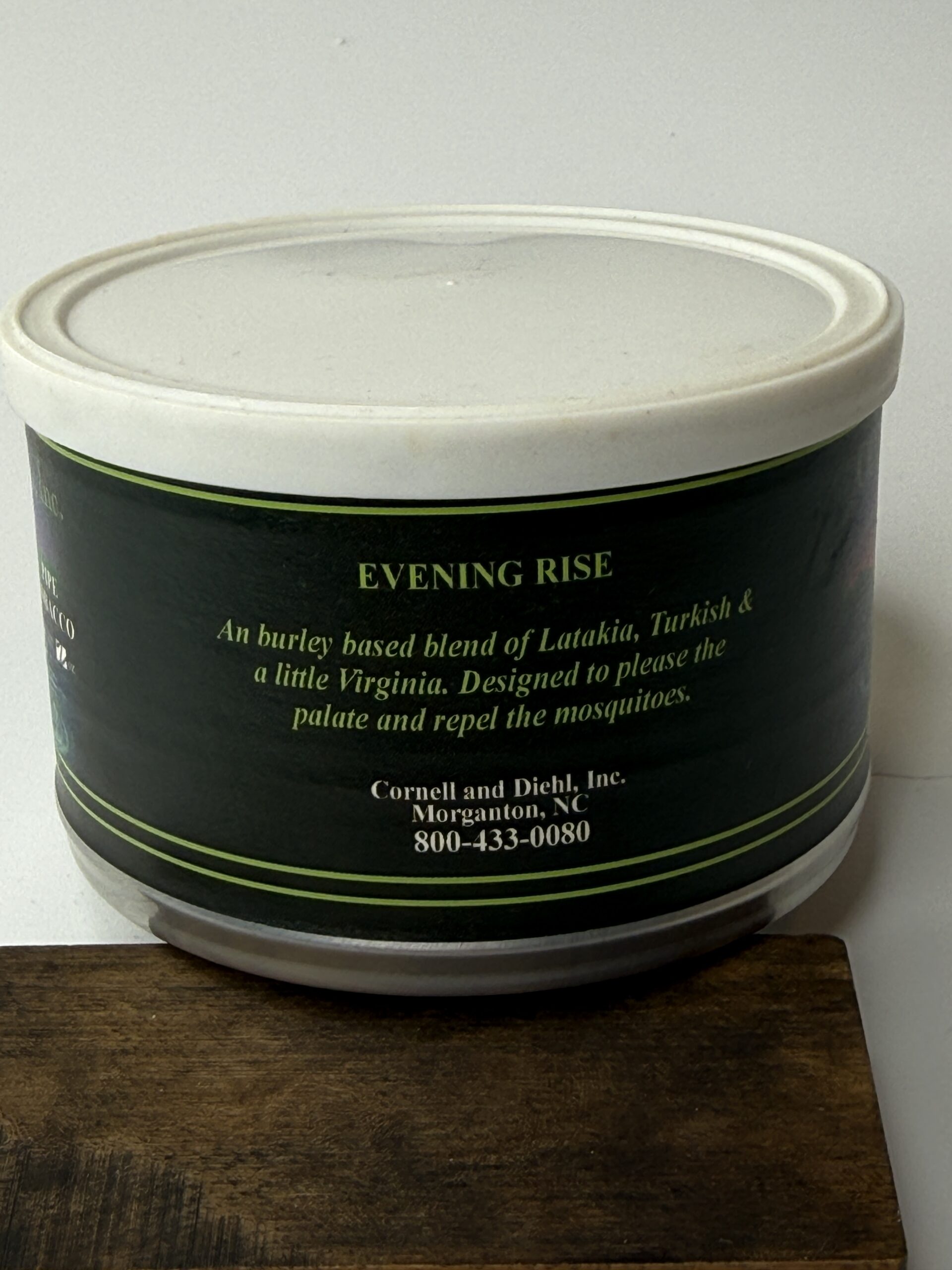 A burley based blend of Latakia, Turkish & a little Virginia. Designed to please the palate and repel the mosquitoes.
