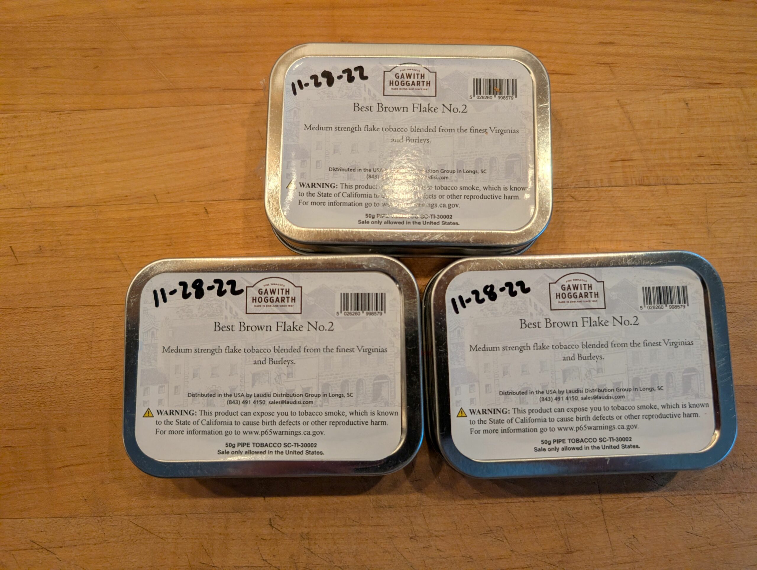 3 - 50g tins of Best Brown No 2 purchased in 2022