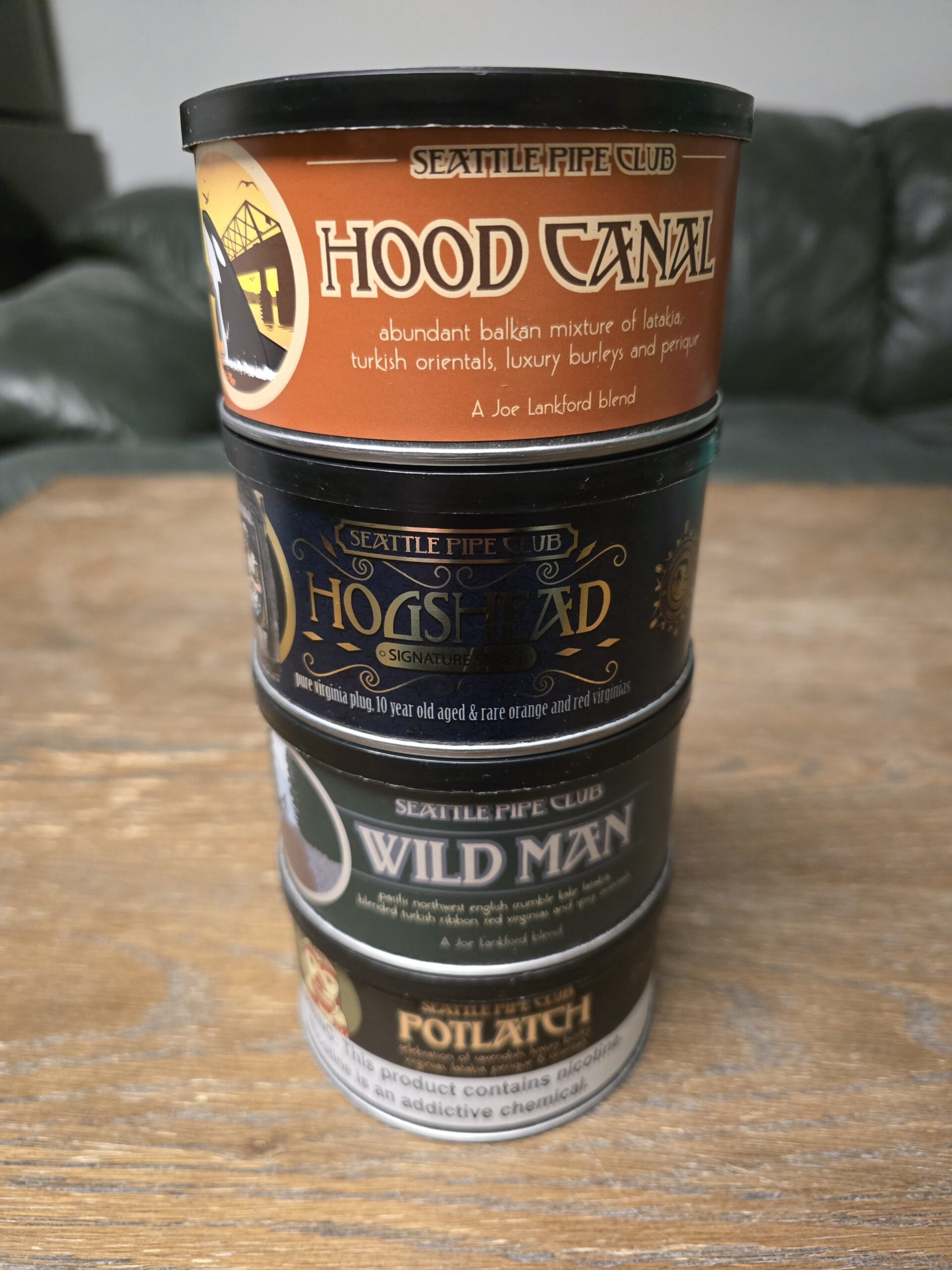 Seattle Pipe Club Hood Canal, Hogshead, Wildman, and Potlatch - 4 Tins NR BIN $150