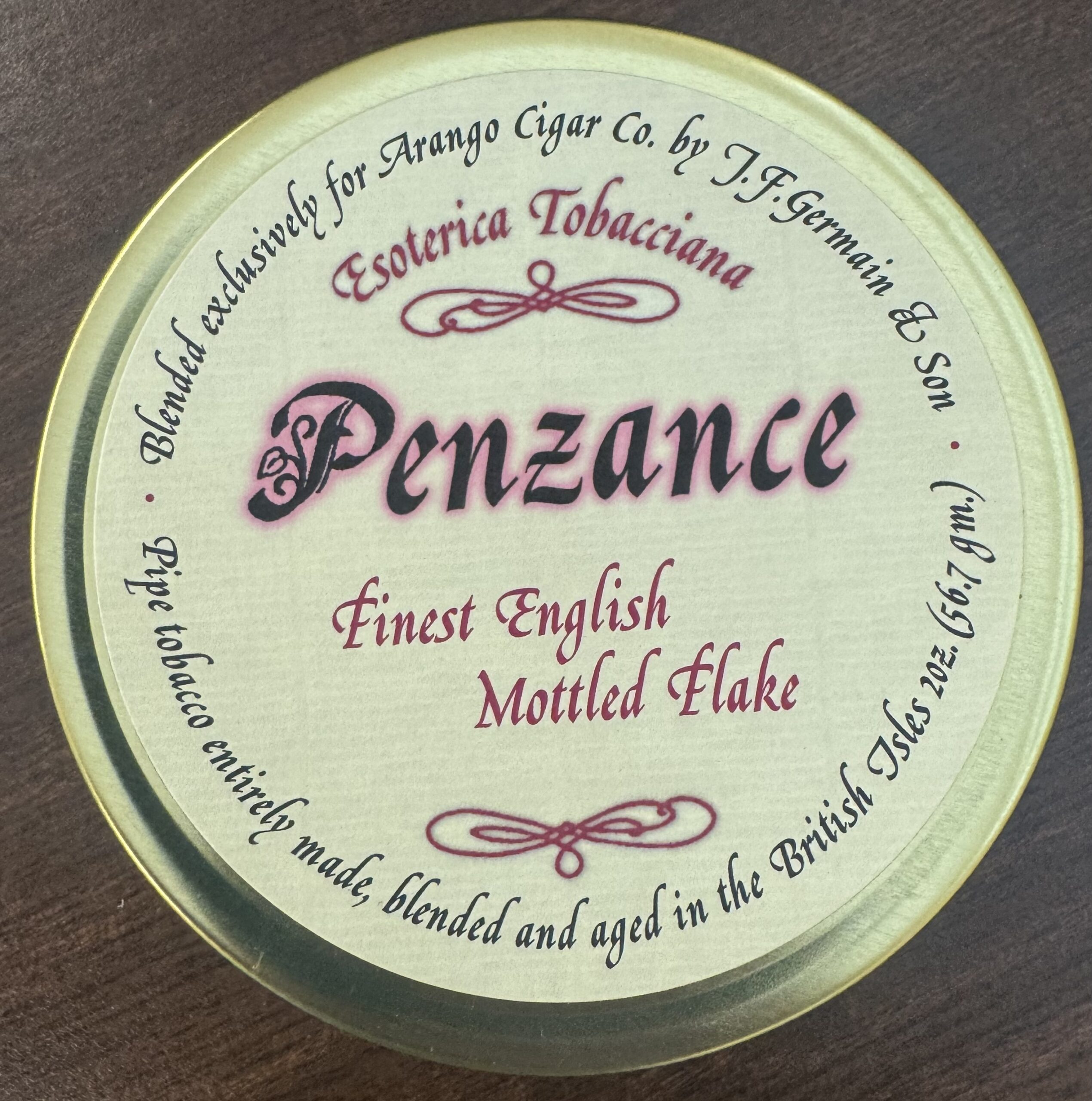 A wonderful complex secret recipe of the finest Virginia, choice Turkish and Orientals and Cyprian latakia, all hand blended together, hard pressed and broad cut into thick flakes. Long matured and easily crumbled to facilitate pipe filling.