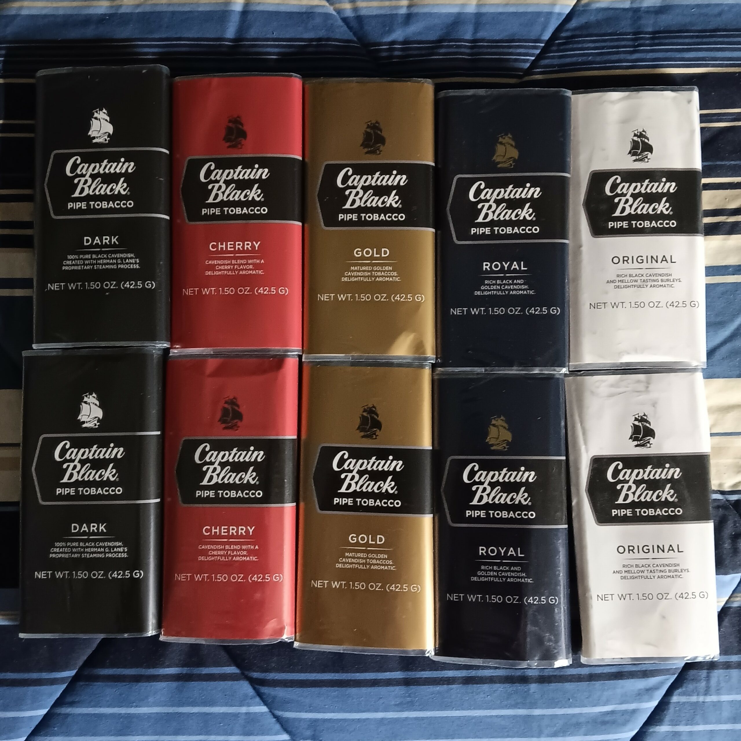 Captain Black Unopened 1.5oz Pouches [2-Cherry, 2-Dark, 2-Gold, 2-Regular, 2-Royal]