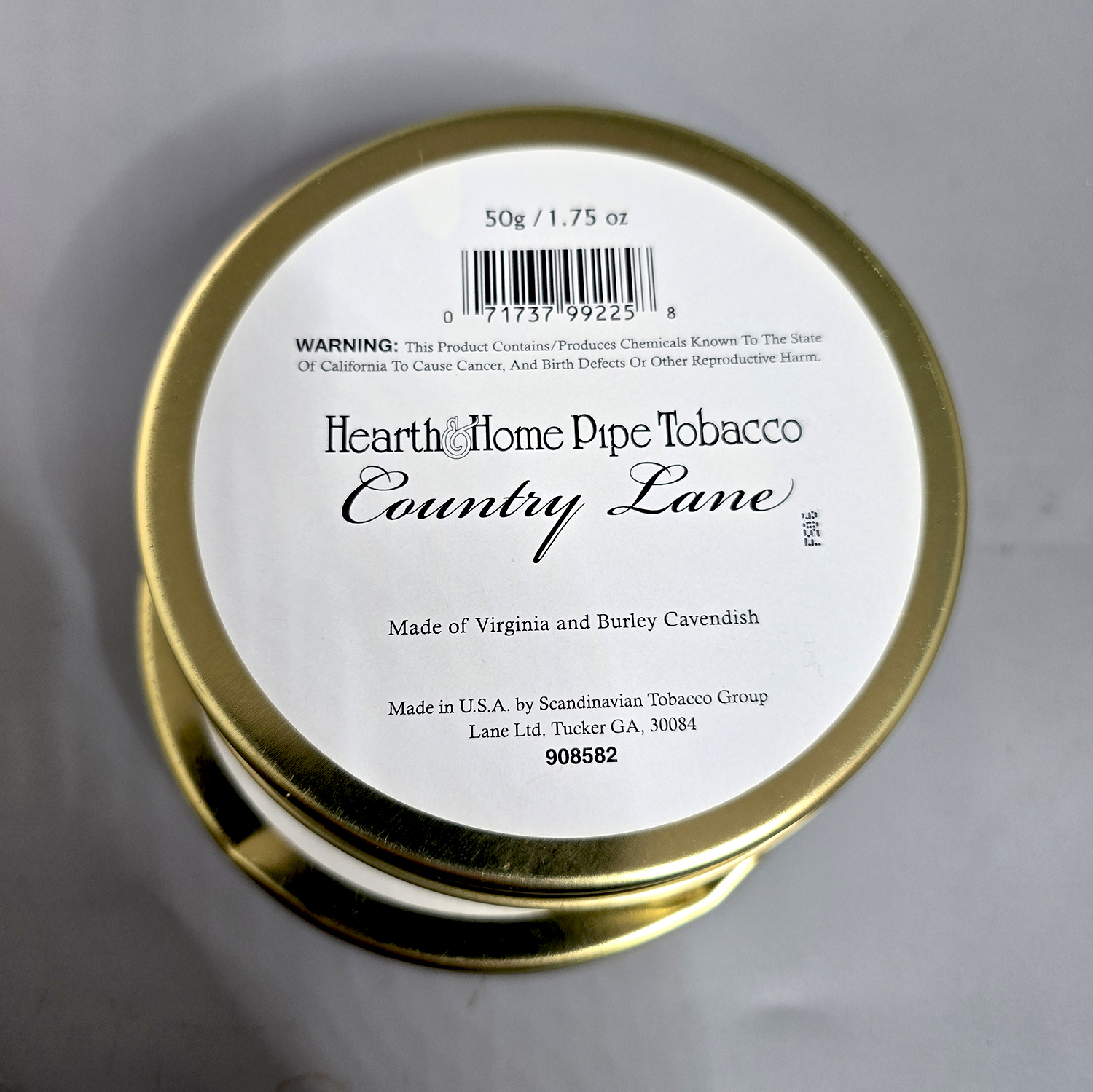 Country Lane tobacco, often by Hearth & Home, is generally reviewed as a straightforward, pleasant, natural Black Cavendish and Virginia-Burley blend, great for new smokers or breaking in pipes, offering simple nutty/sweet notes without heavy toppings, burning well, and being an easy all-day smoke. It believe it's at least 7-8 years age, as there is no smoking waring labels.