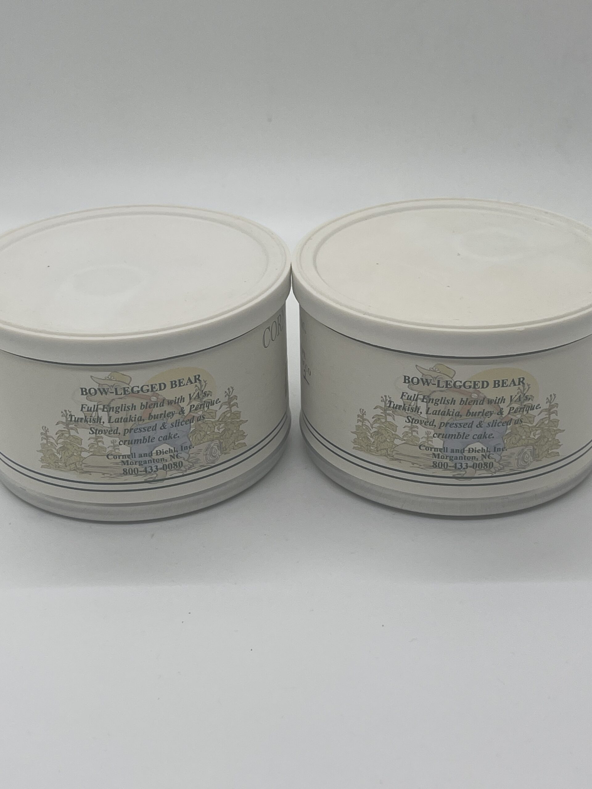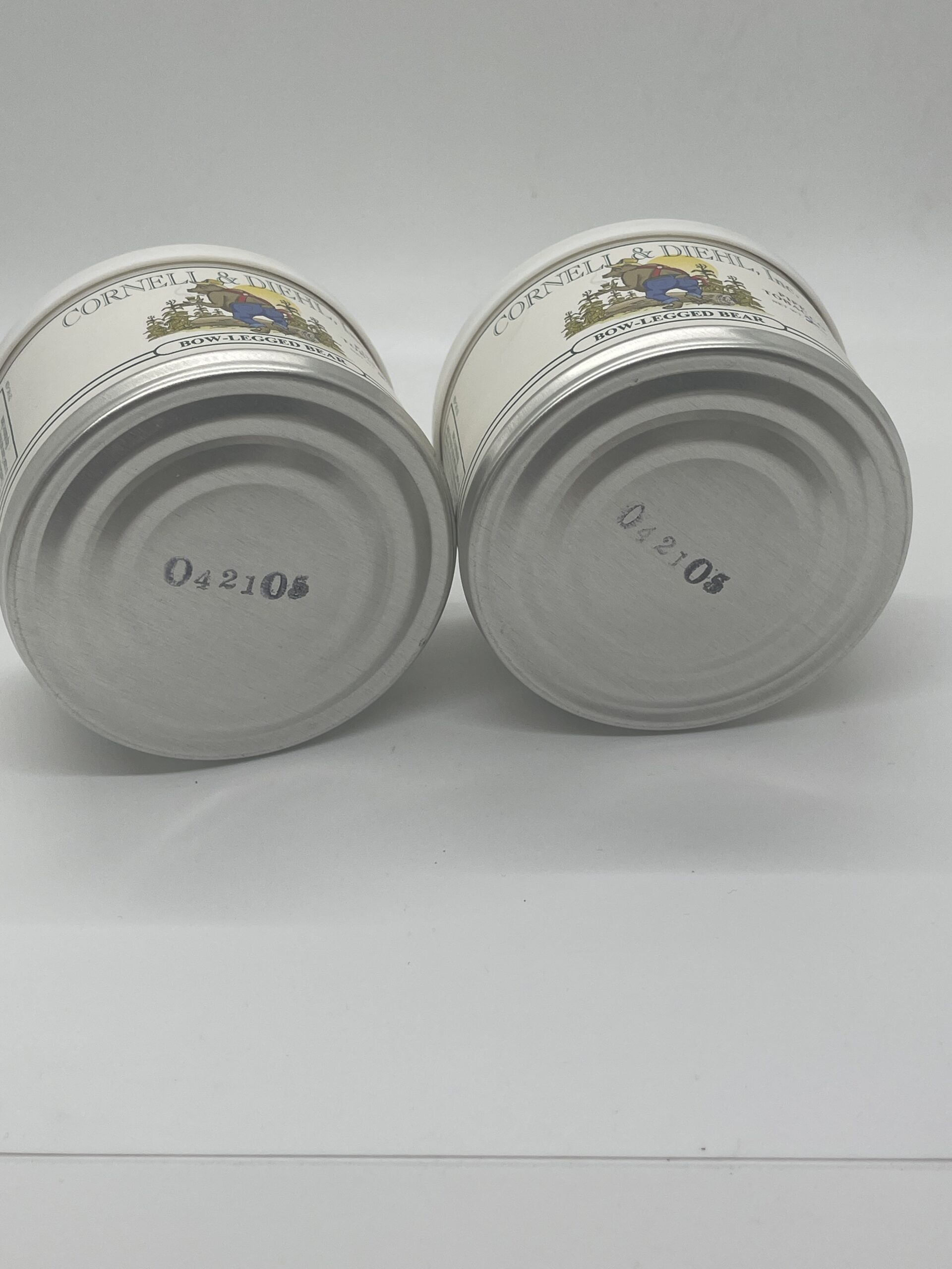 Two sealed tins of Cornell & Diehl Bow - Legged Bear circa 2005.