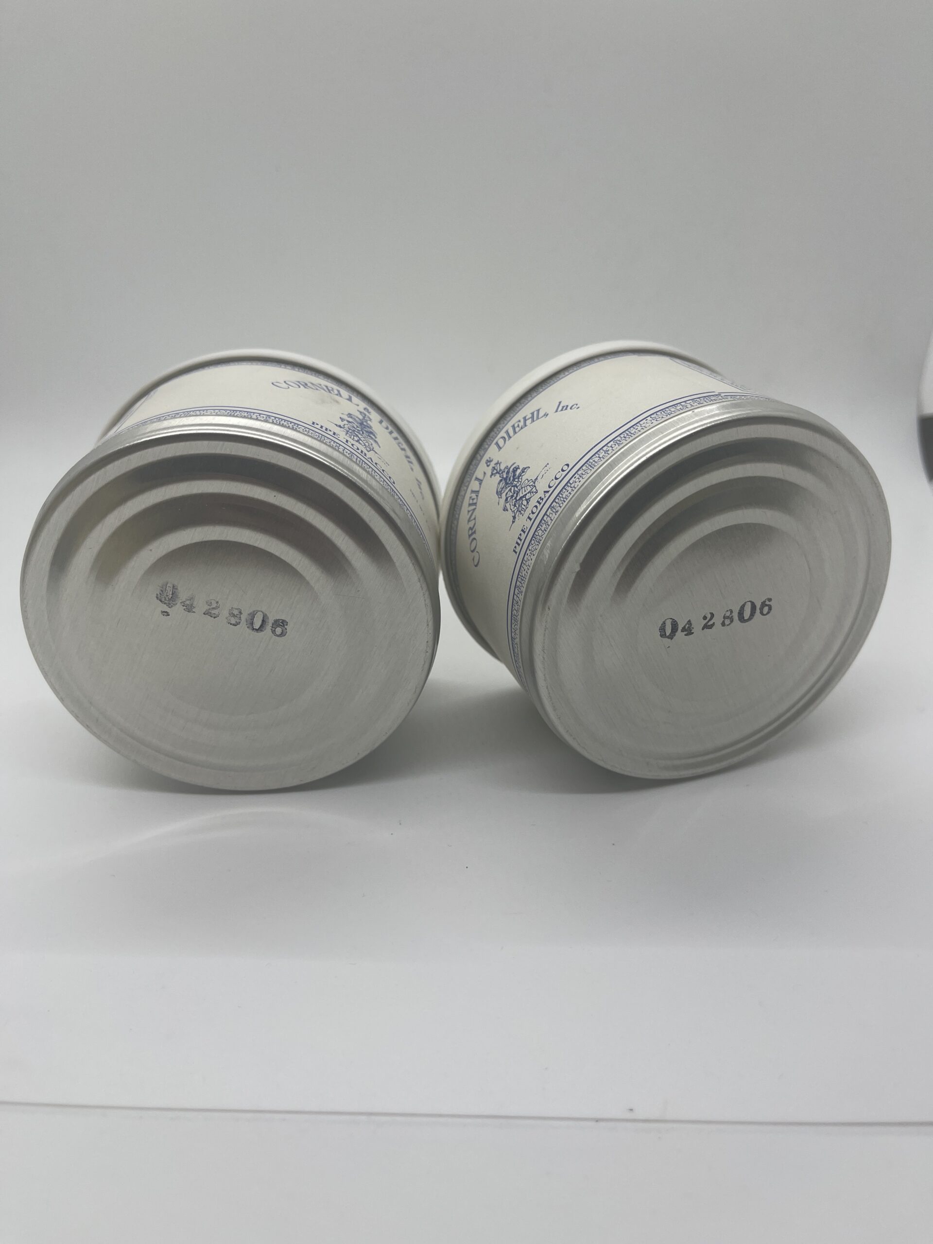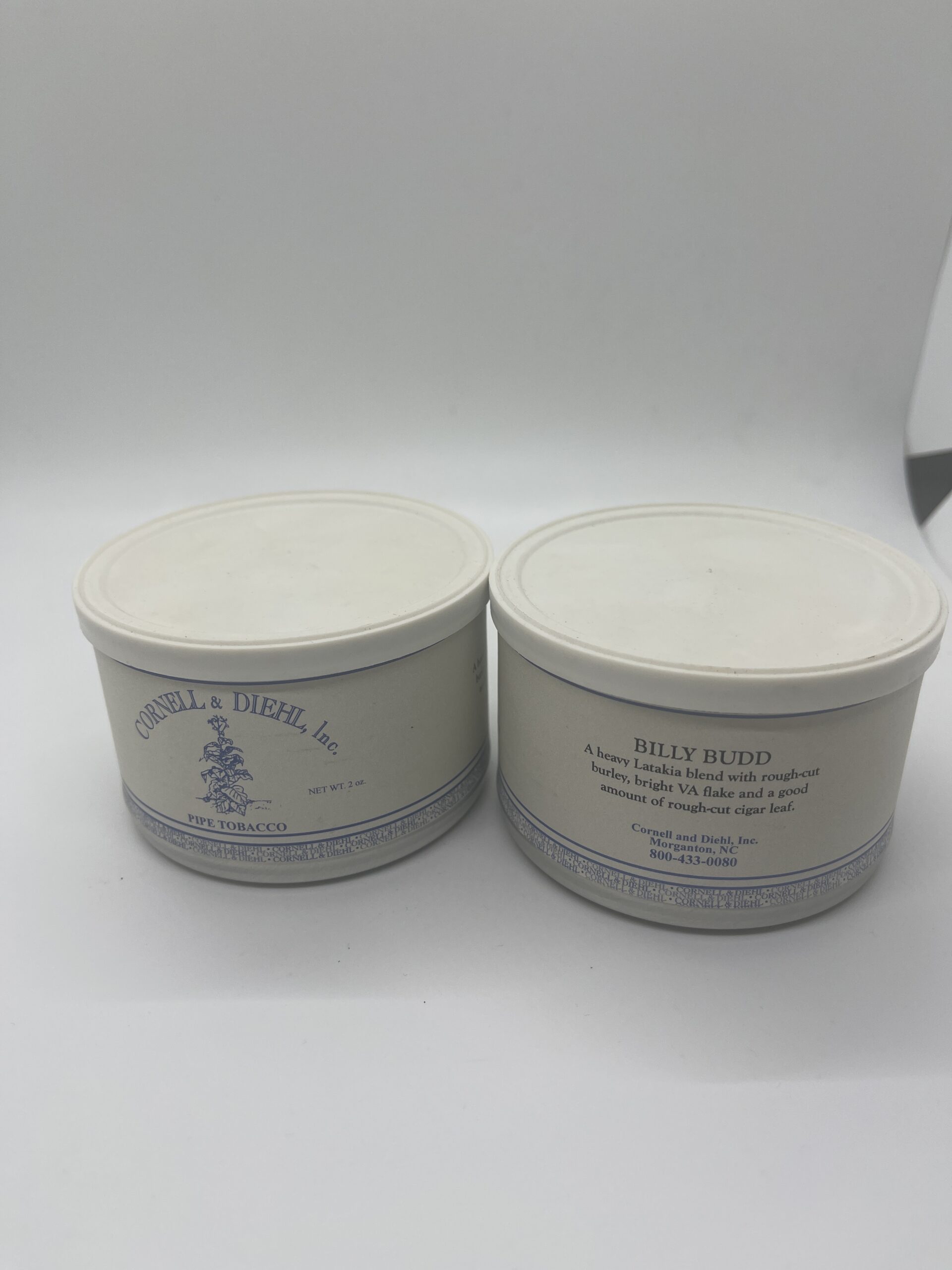Two sealed tins of Cornell & Diehl Billy Budd circa 2006.