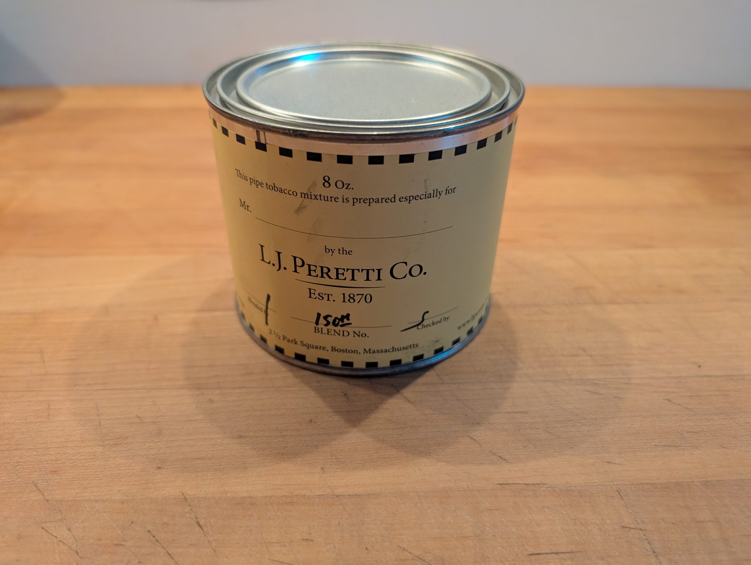 8oz tin of 150th Anniversary Blend purchased in 2022