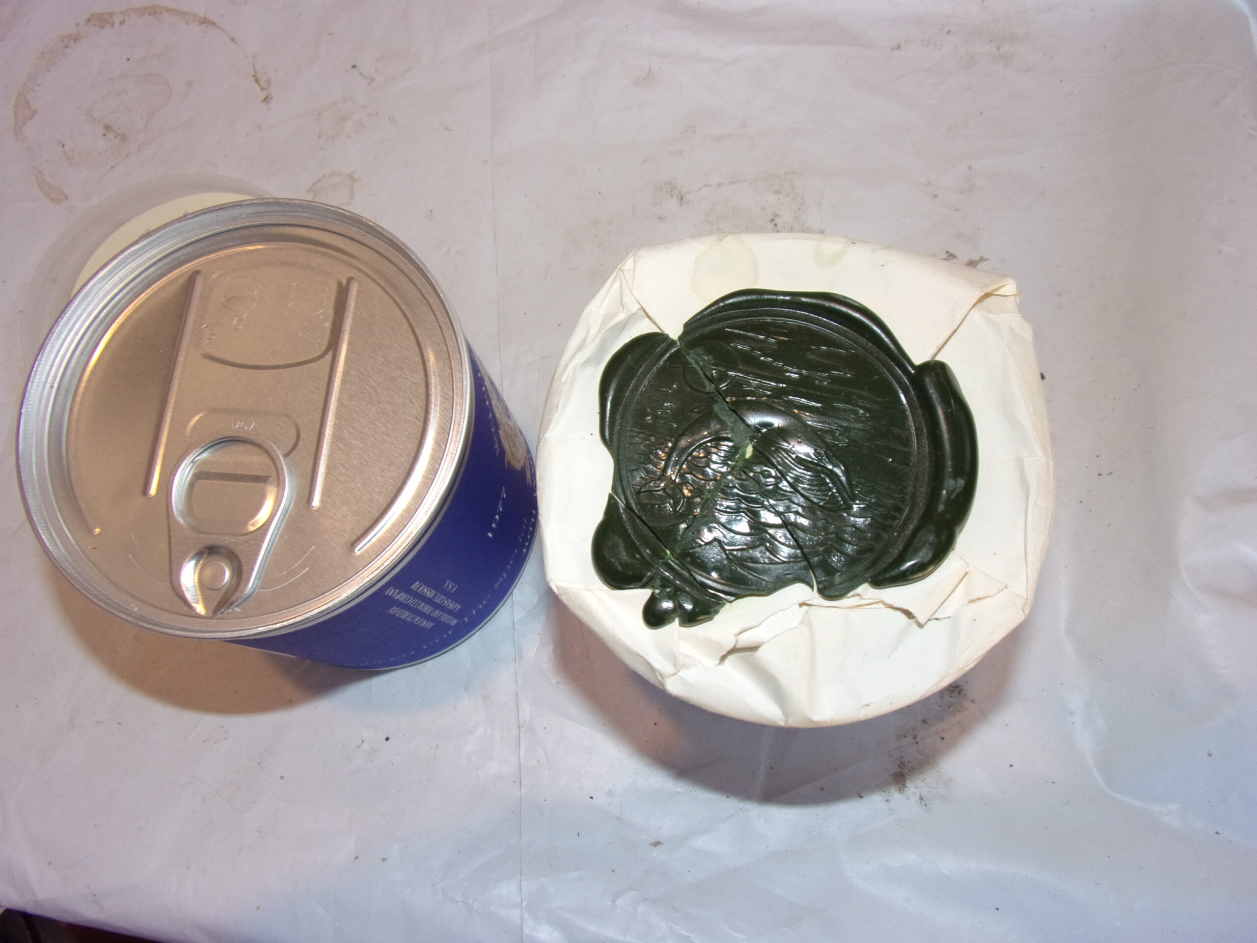 slight tear in paper, thin crack line down wax seal