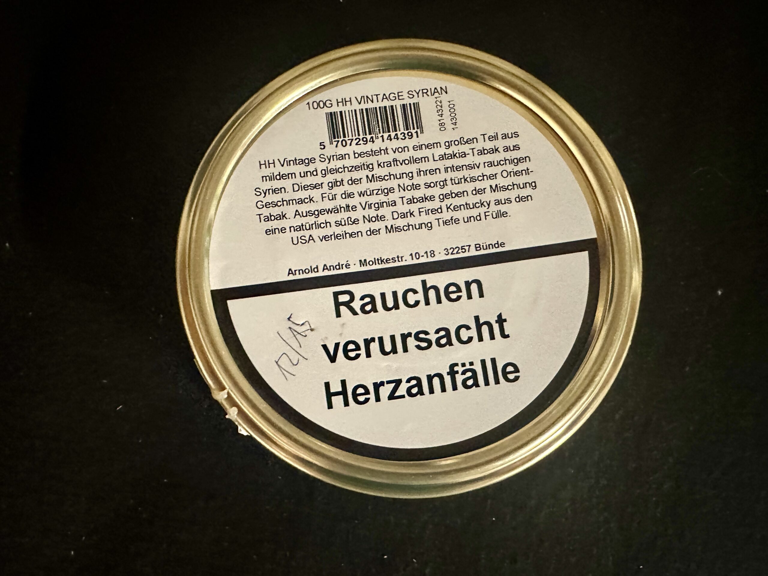 This 7-day auction is for one sealed 100g tin of 2014 MacBaren HH Vintage Syrian. Originally purchased in Austria.