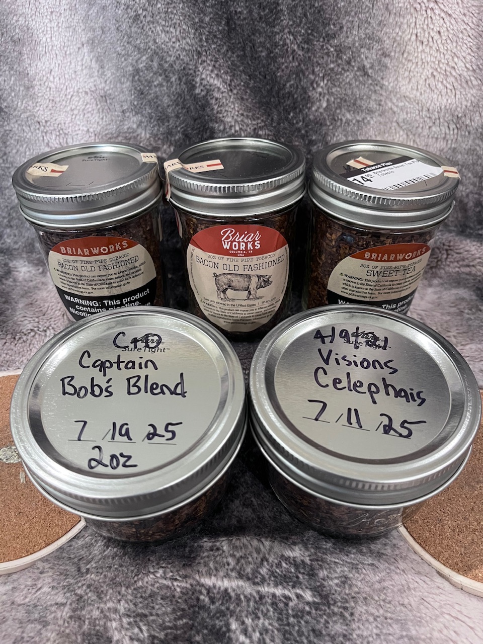 1 opened jar of BriarWorks Sweet Tea 08/23/21. Opened in 2025 minus 2 bowls smoked.