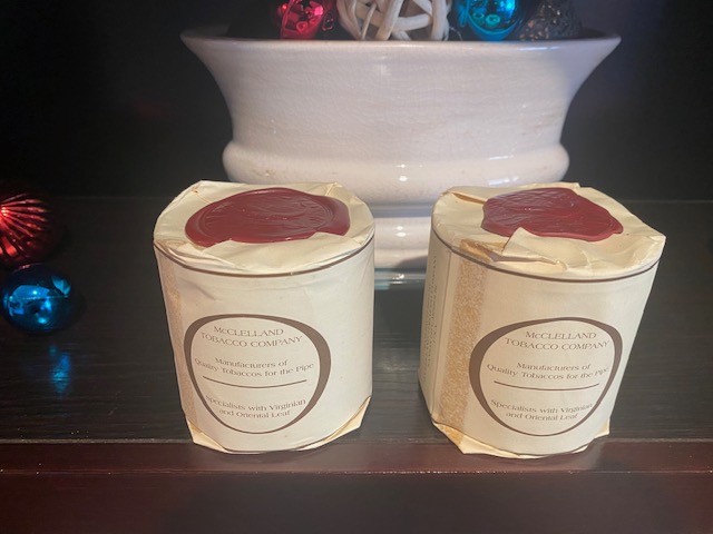 AGED and SEALED two tins of McClelland Anniversary Red wax Seal from 2002. 100g tins. Well aged and ready to enjoy. Rare find of sealed out of production tobacco.