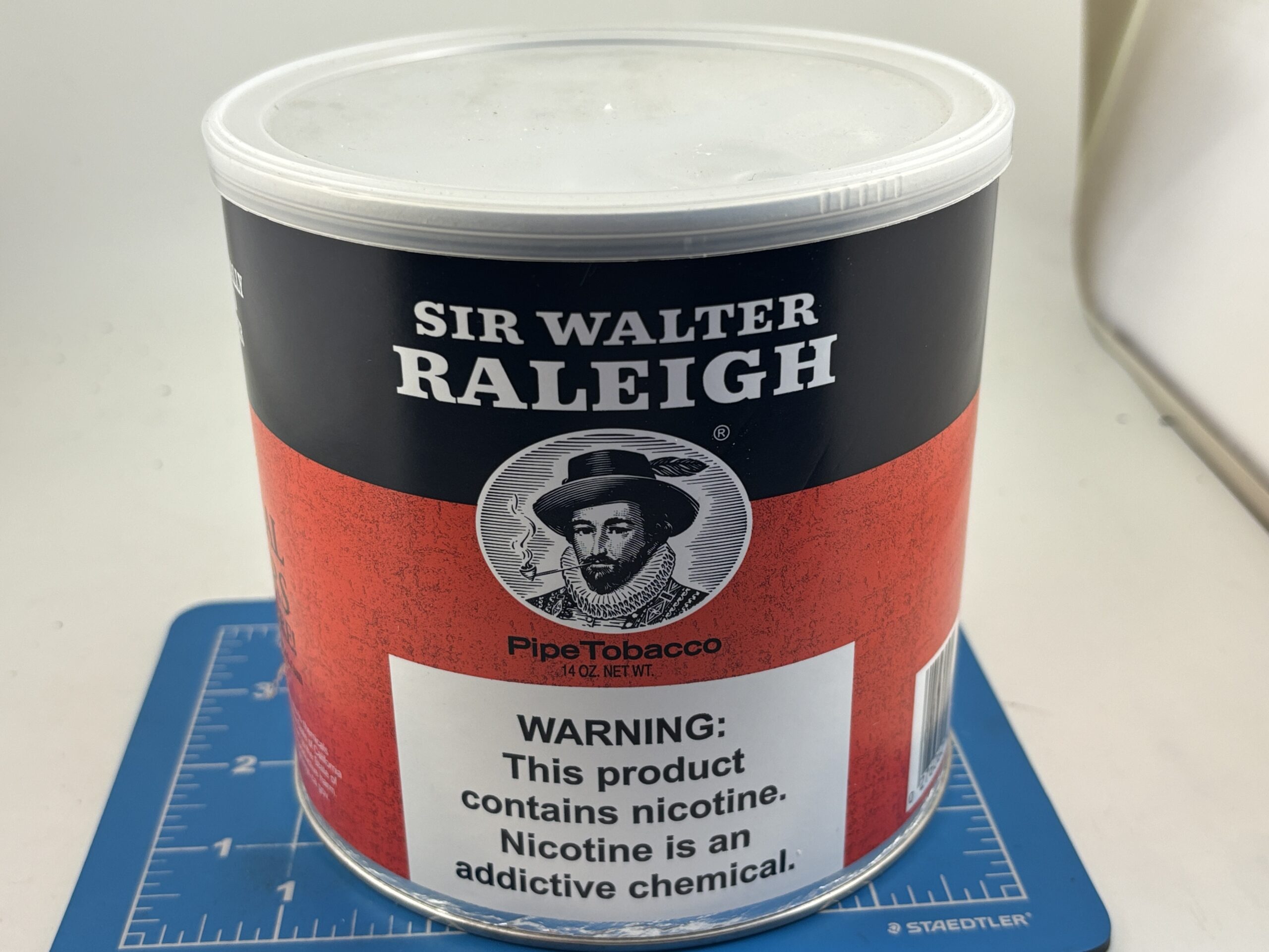 Excellent Sealed Sir Walter Raleigh Pipe Tobacco 14oz. Tin.