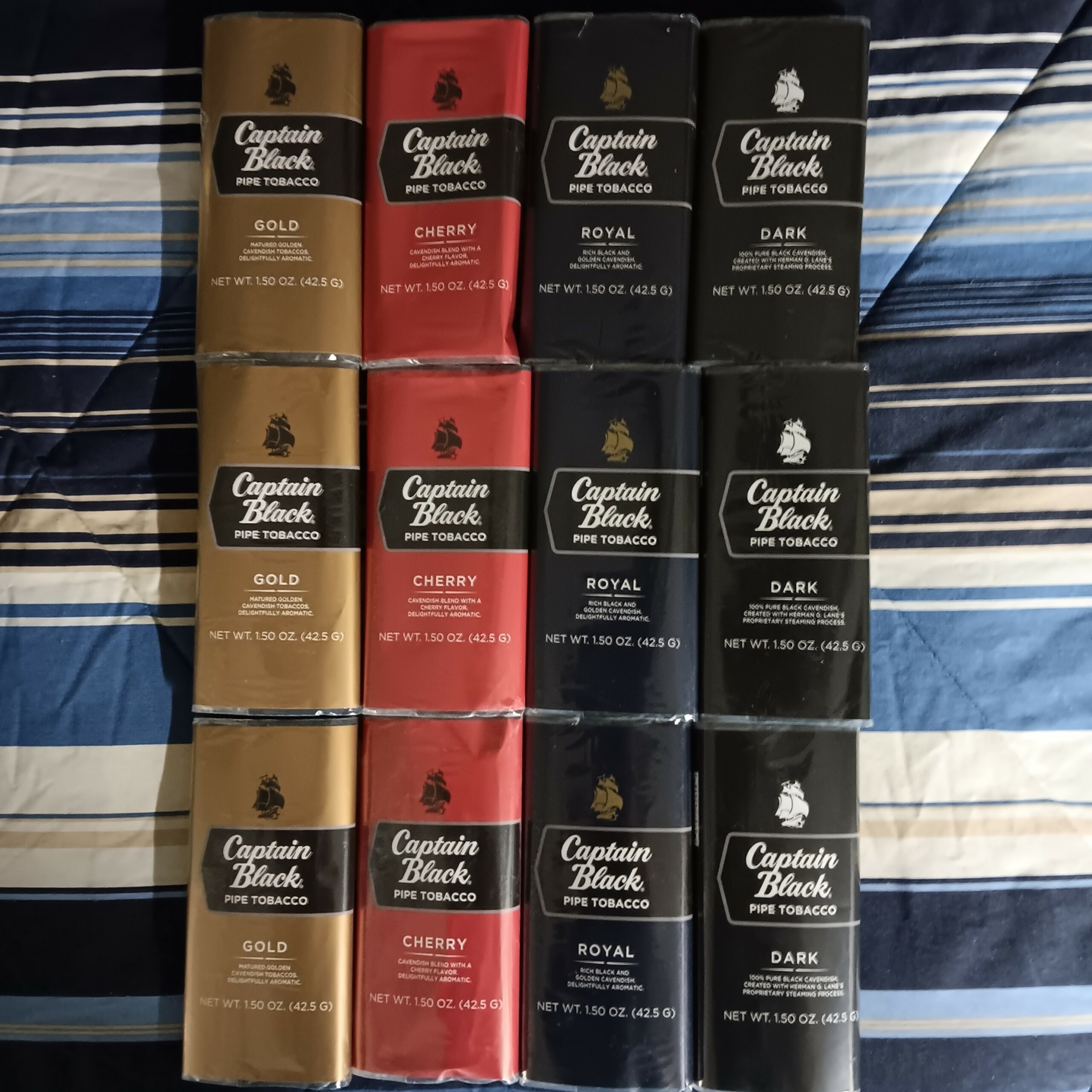 12 - Captain Black Unopened 1.5oz Pouches [3-Gold, 3-Cherry, 3-Royal, 3-Dark]