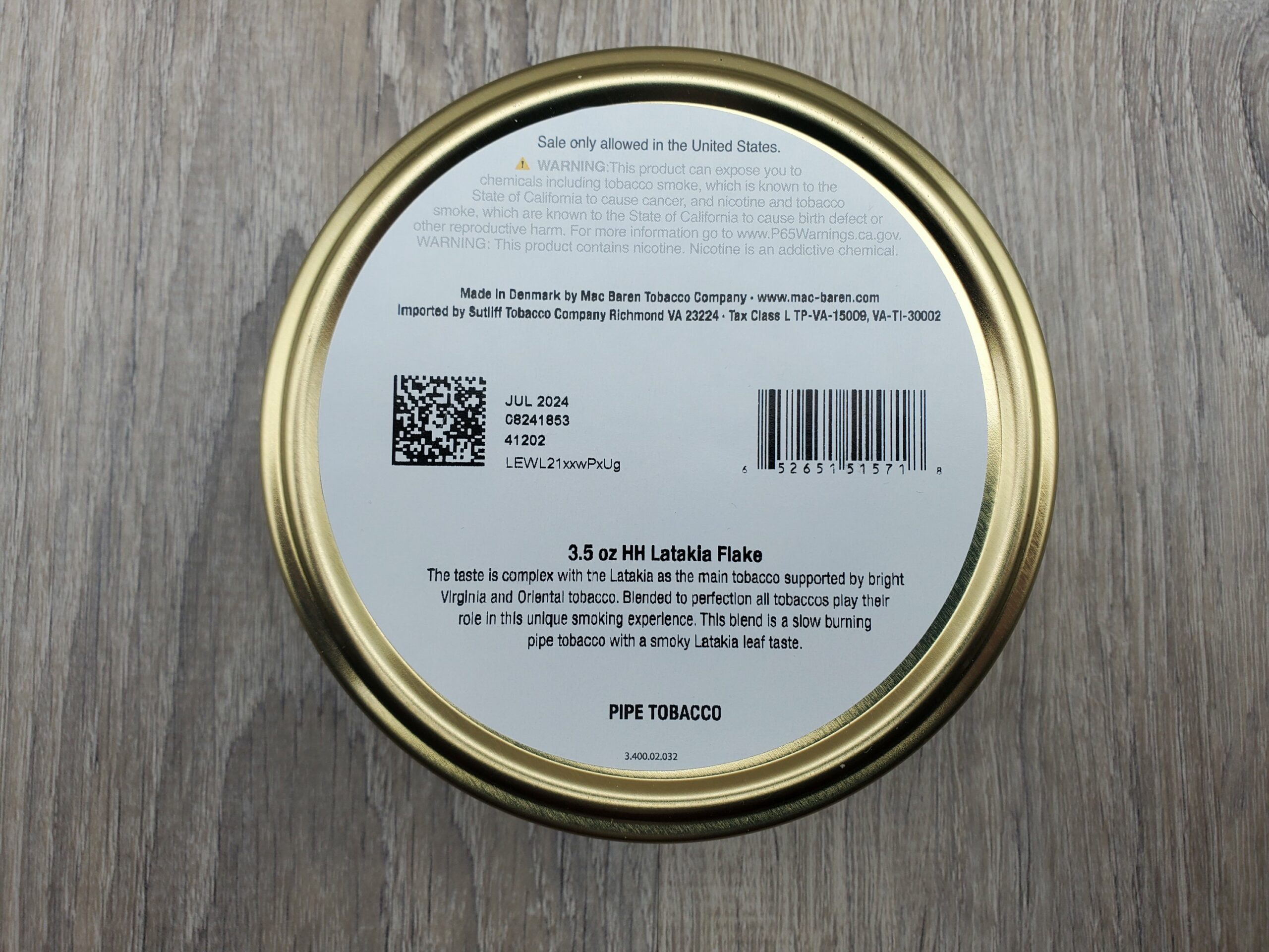 Mac Baren HH LATAKIA FLAKE - 3.5oz TIN