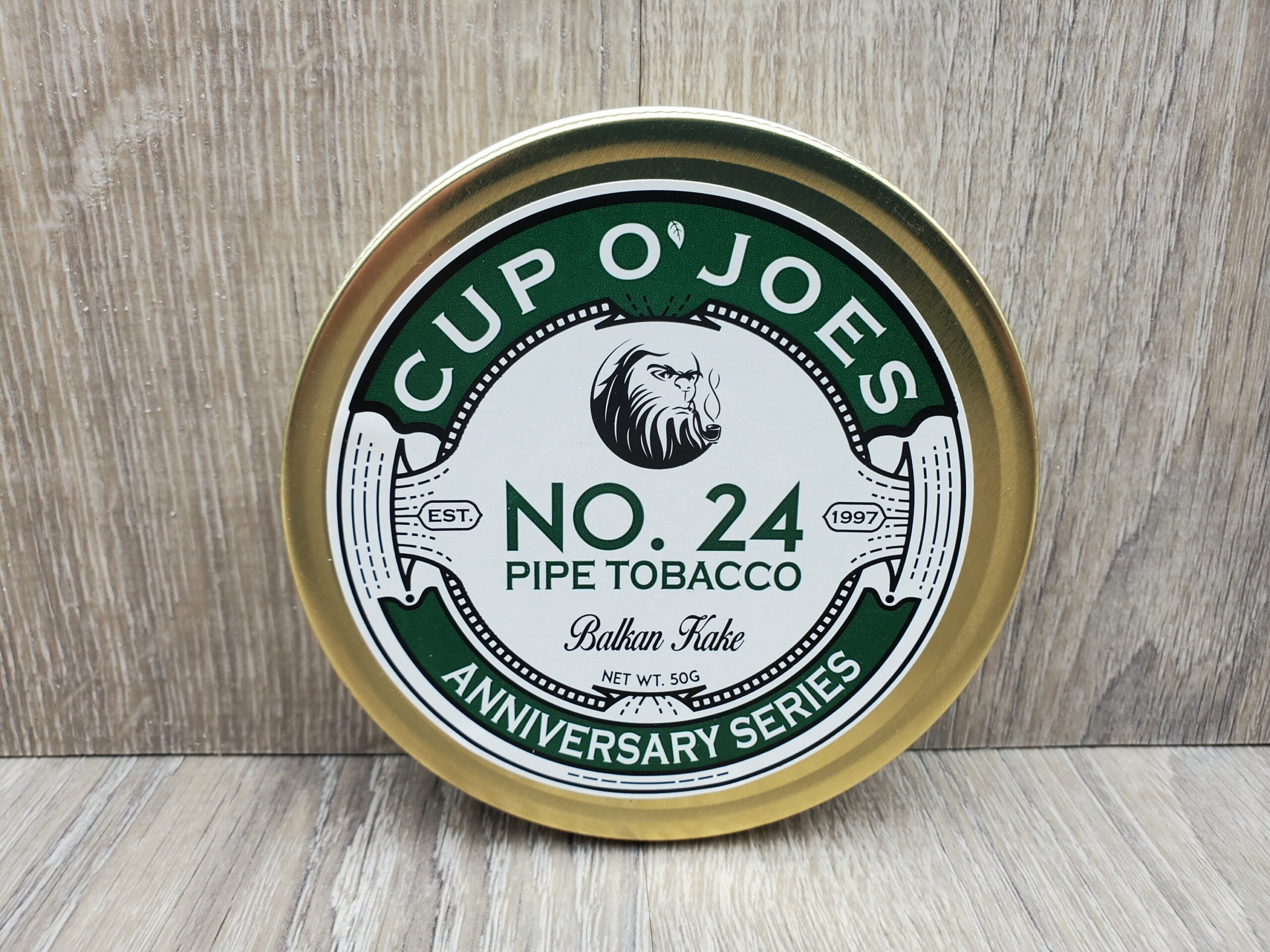 "Celebrating 24 years of Cupojoes.com with a very special new tobacco! Our Blend No. 24 Balkan Kake is a timeless Balkan mixture with Orientals, smoky Latakia & sweet Virginias - pressed into a Crumble Kake to create a harmonious & well balanced blend."