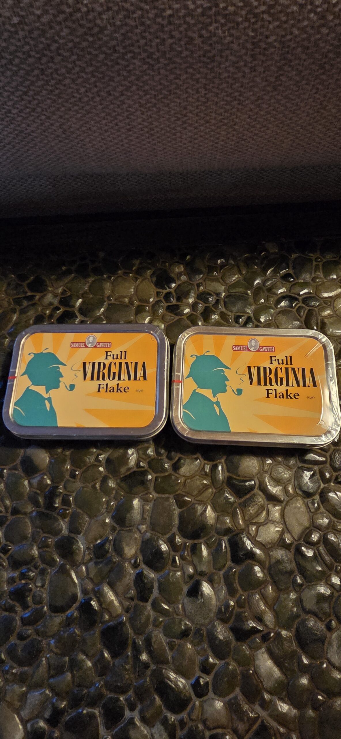 Two tins of Samuel Gawith Full Virginia Flake from 2024