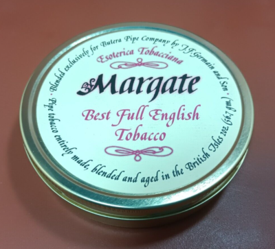 Margate: A classic English mixture done in the "old style" of many of the fine tobaccos that have now disappeared from the market place. Choice Orientals, matured Virginias, and generous quantities of premium Cyprian latakia keynote this rich, full bodied blend. A well balanced, robust and eminently satisfying smoke.