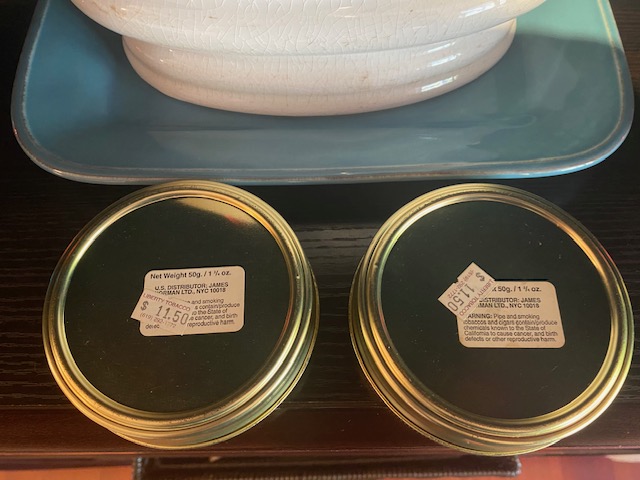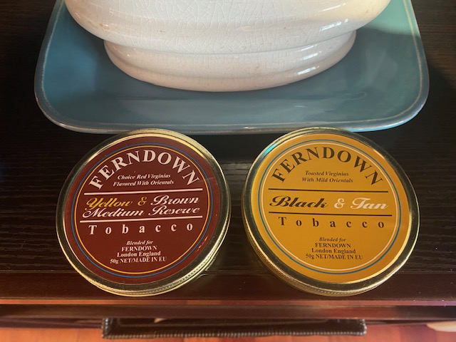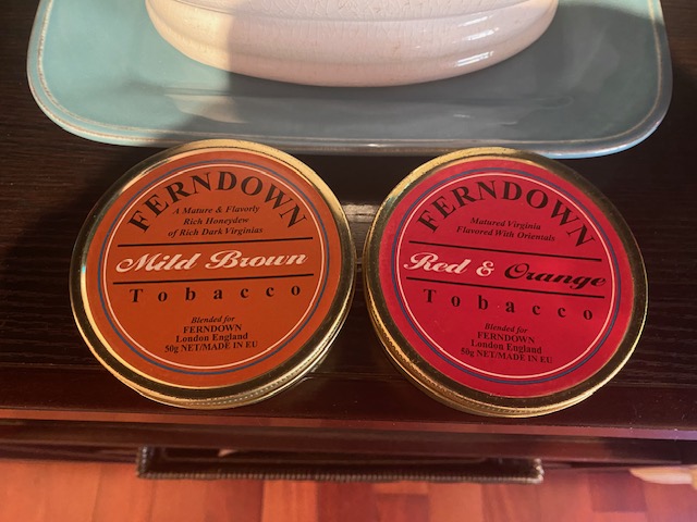 4 - 50g. tins of Ferndown pipe tobacco. Sealed, well aged and ready to enjoy. My estimation based on the retail CA price tag, these tins are from around 2005-2010 but that is only an estimation. Rare find of sealed out of production tobacco.