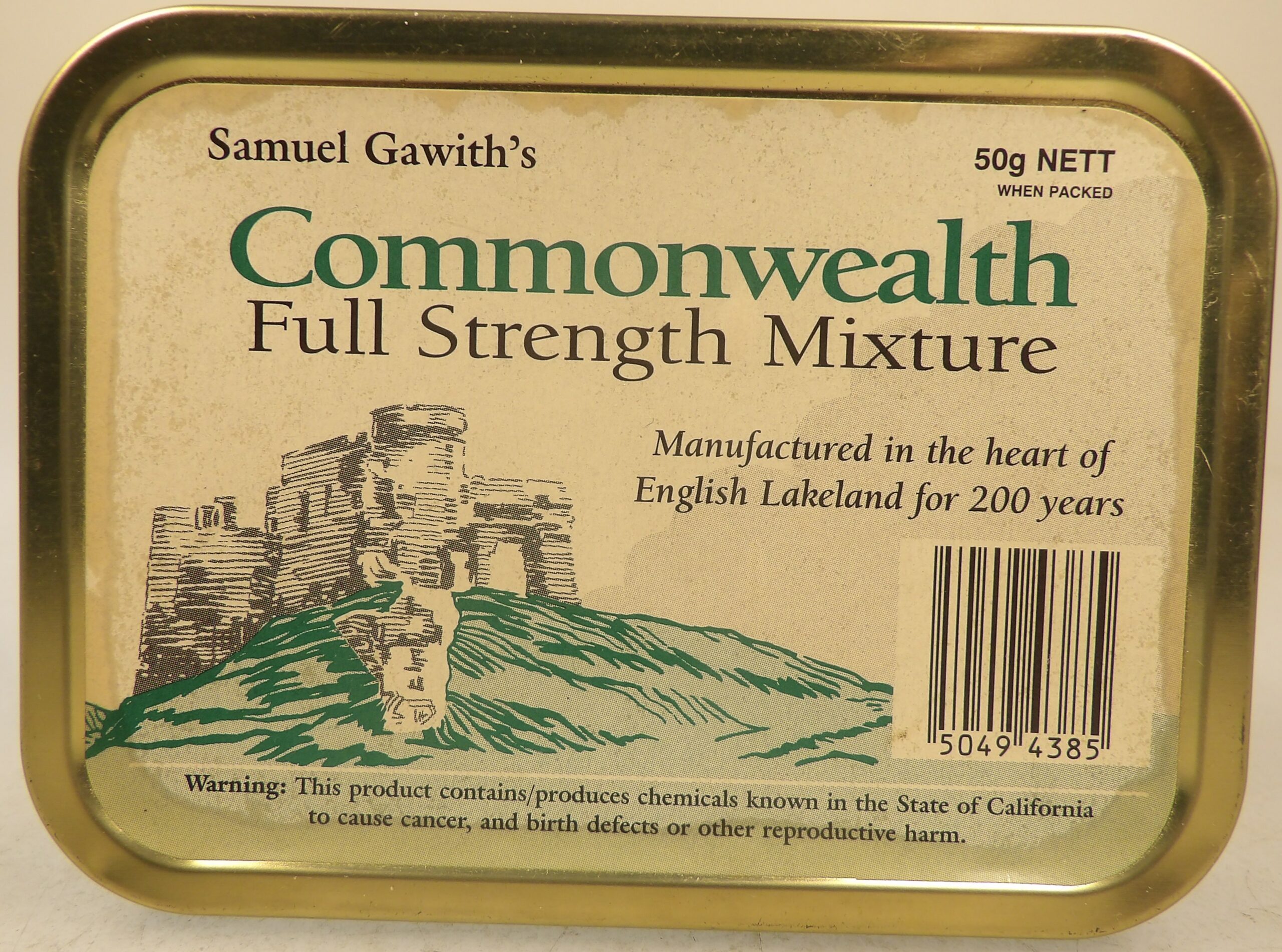 DESCRIPTION: Here is an auction for sale. It is a Vintage Collectible Samuel Gawith Commonwealth 50gm Sealed Pipe Tobacco Tin from 2004. This tin is sealed and has never been opened. Commonwealth is one of Samuel Gawith's oldest and best known. The blend of Virginias and Latakia offers a full strength smoke. “Upon opening this ripe old tin, you will be greeted by a very oily wax paper cover that protects a dark, rich looking blend with a smattering of sugar crystals all over the leaf. The tin bouquet is enticing and will cause the body to undergo a trembling sensation as you load your pipe. It was not all that easy to pack anyway because the leaf is very long-stranded. At the match, this one provides a pleasant, sweet Latakia flavor with delightful aged Virginia playing in the background. A 50/50 Virginia/Latakia blend that will please” (from Pipestud). Good Luck Bidding and Thanks for Stopping by.