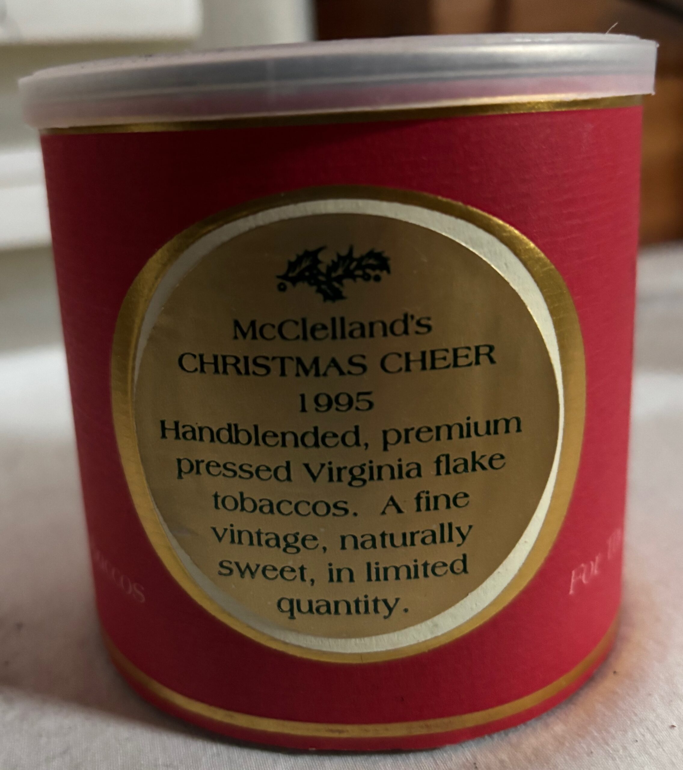 One 100 gram tin of McClelland Christmas Cheer 1995. The tin is unopened and has been in cool, dark, and dry storage.