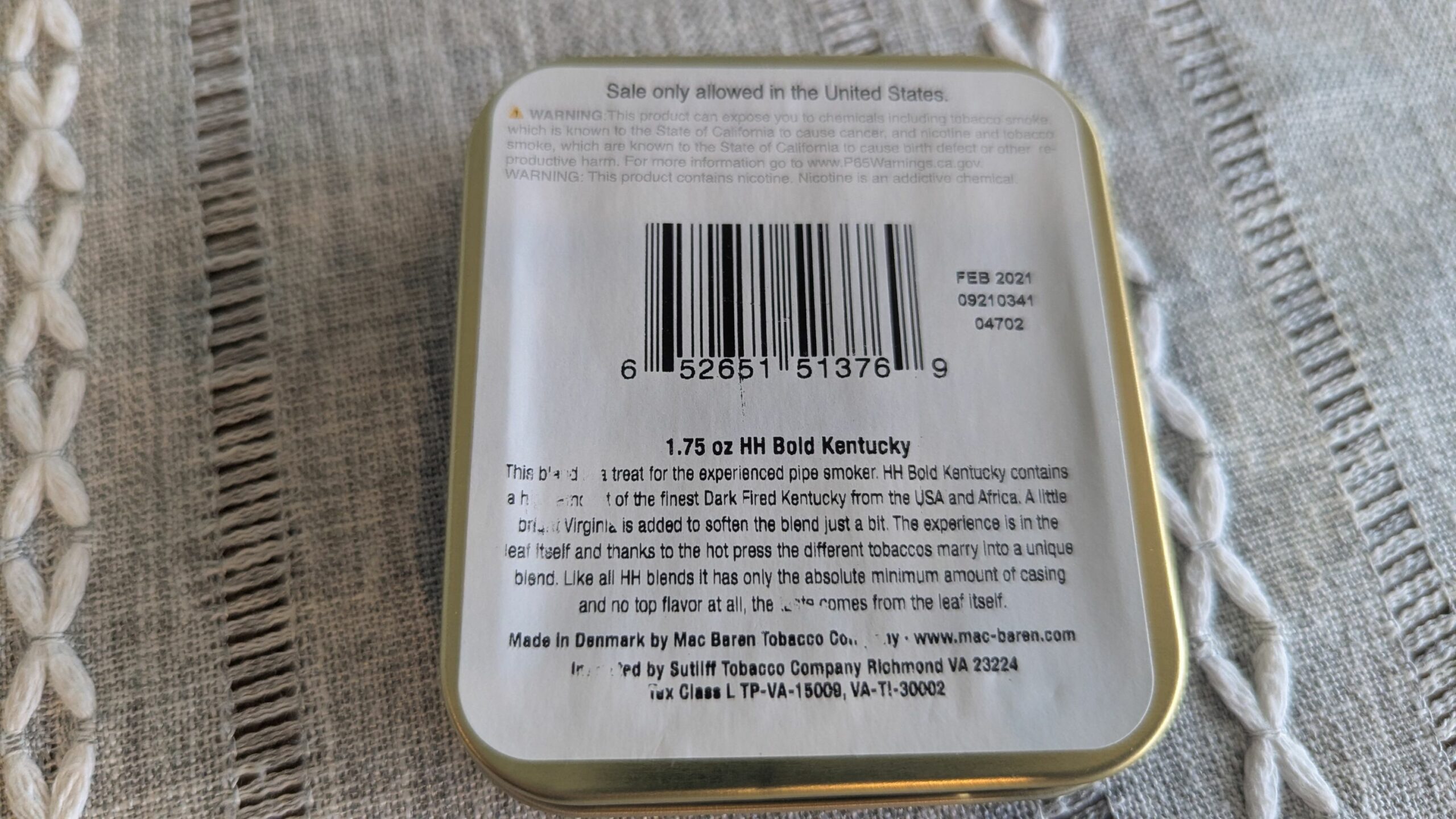 1 sealed tin of 2021 Mac Baren HH Bold Kentucky