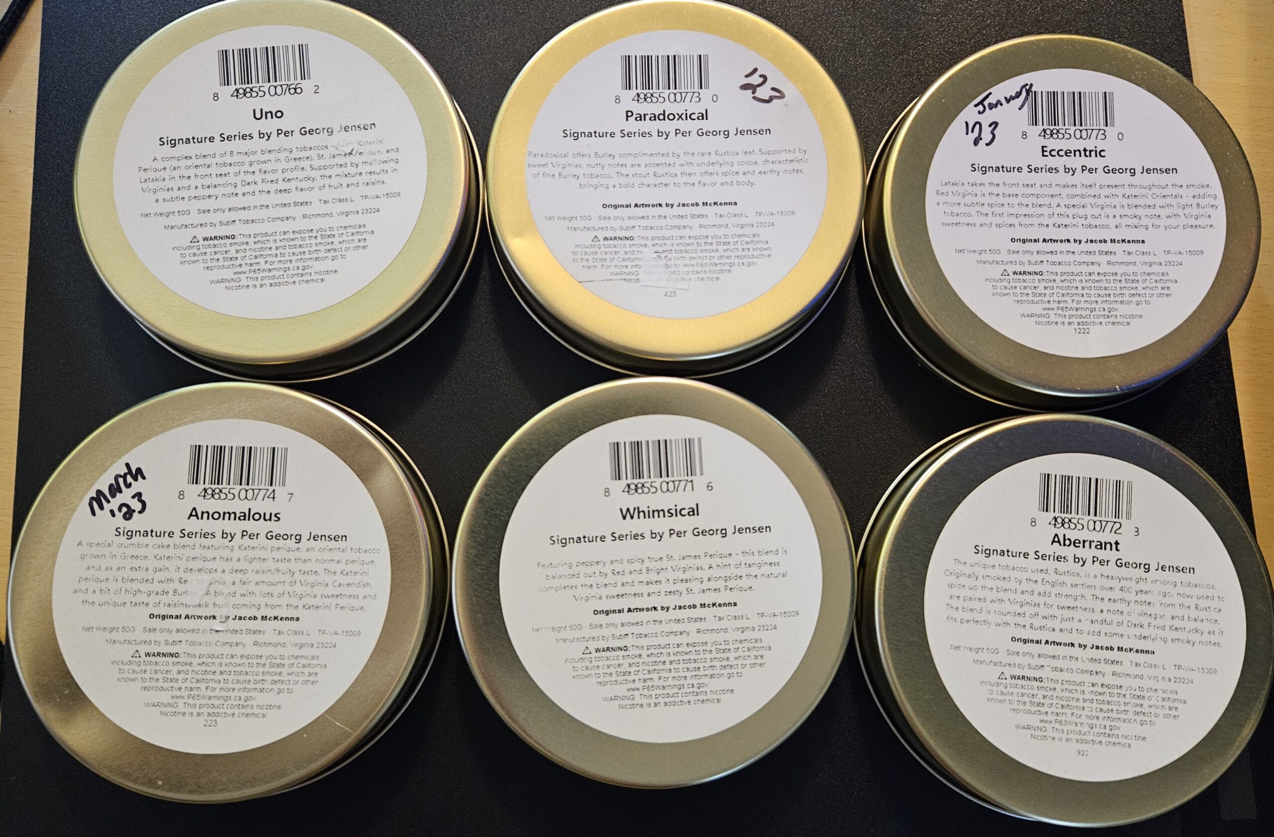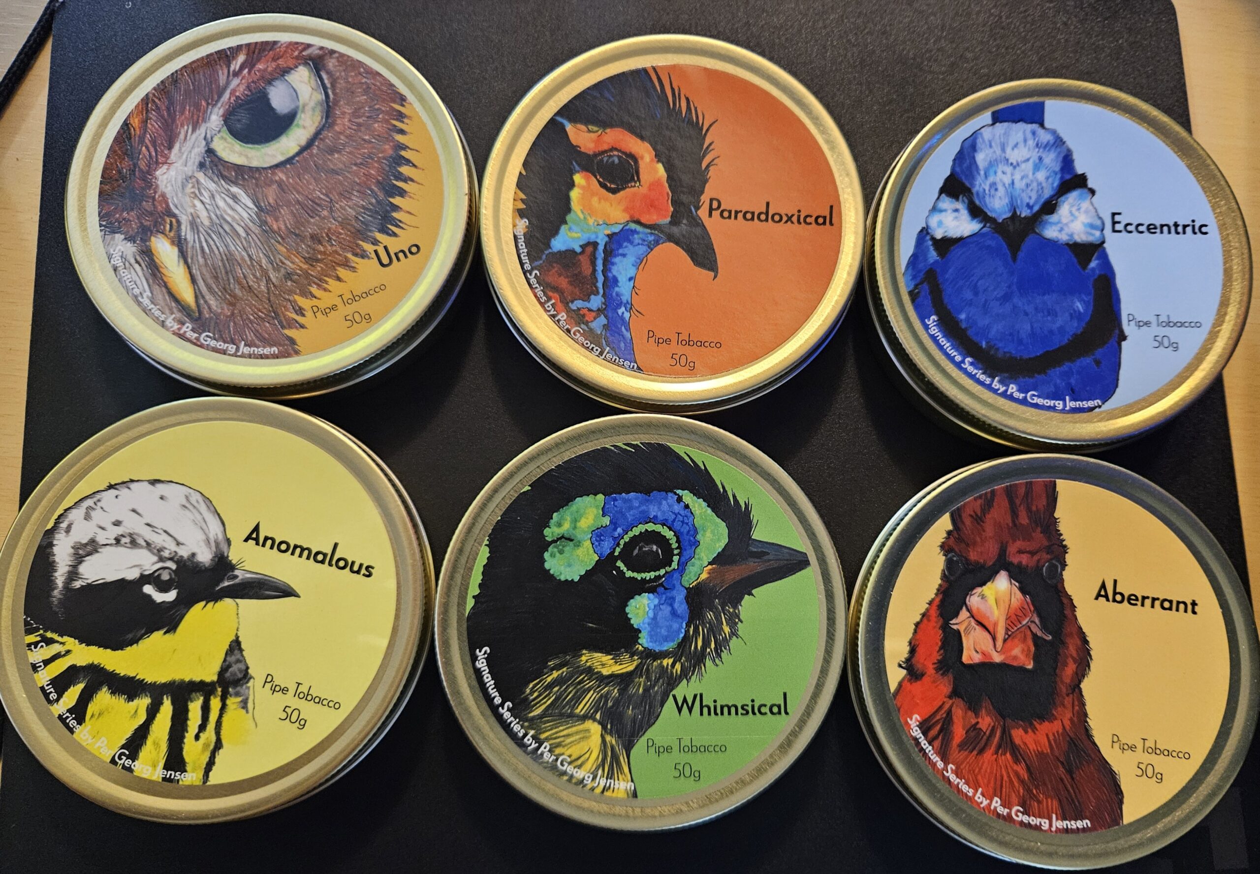 unopened tins, 1 each, of the Birds of a Feather series from Per Jensen.