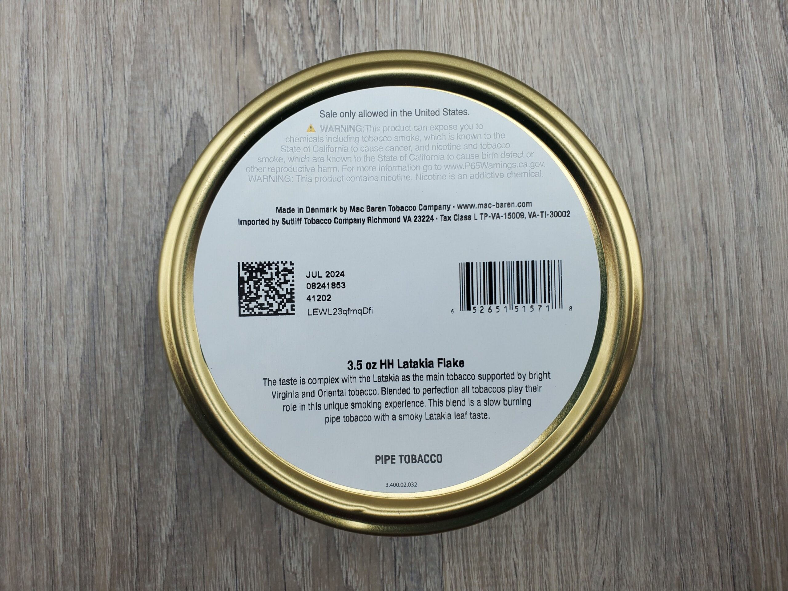 Mac Baren HH LATAKIA FLAKE - 3.5oz TIN