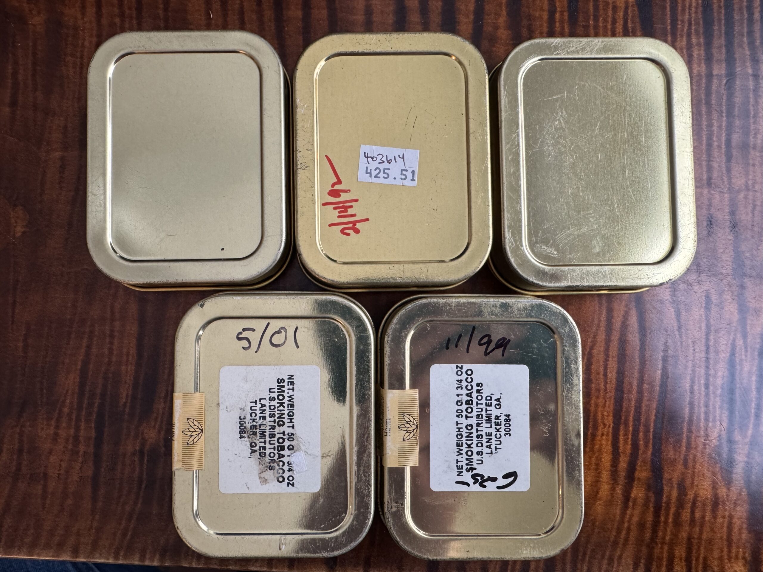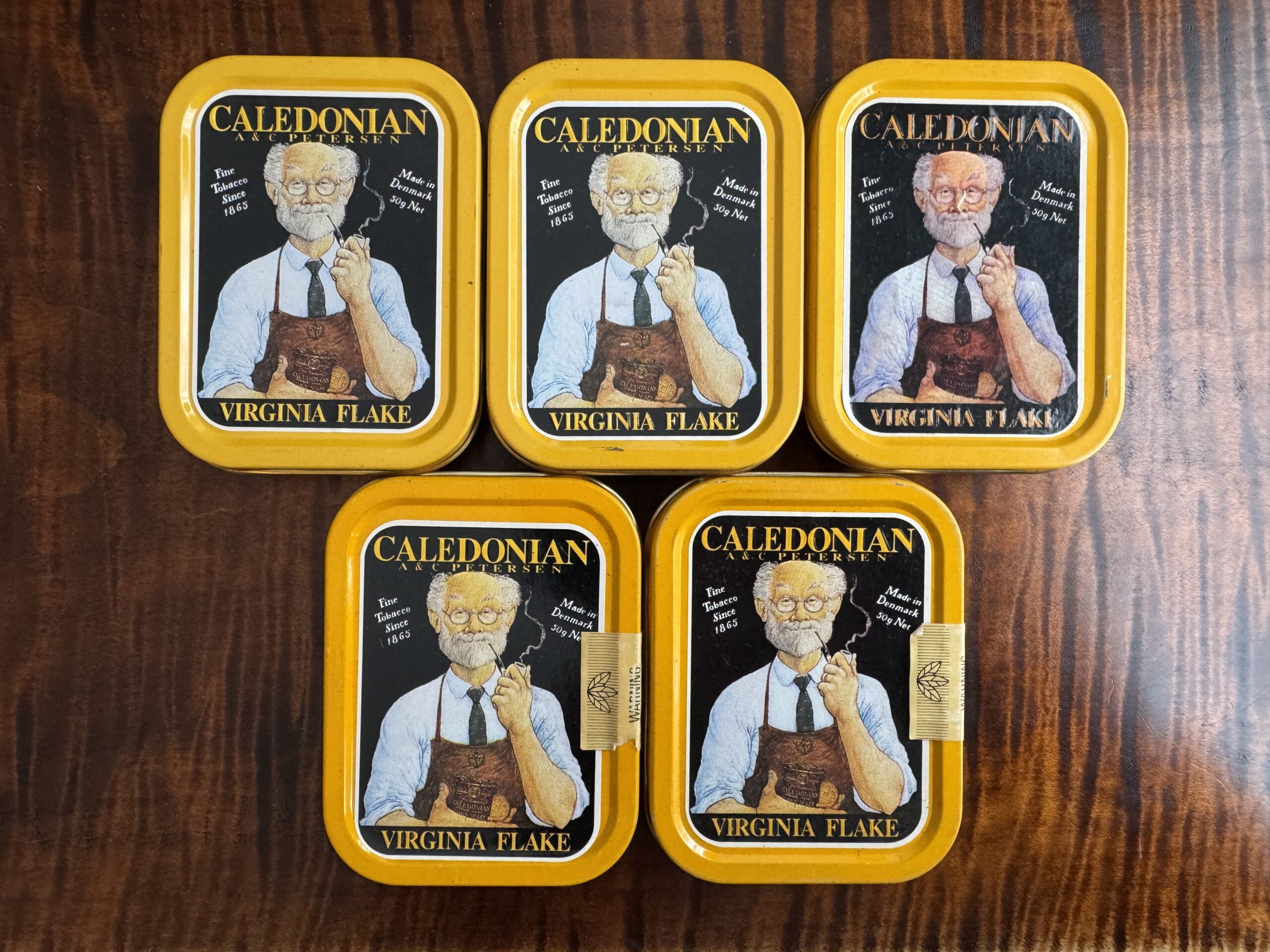 5 tins Caledonian Virginia Flake plus rare bag 1992-2001