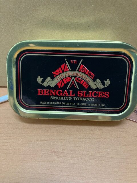 Bengal Slices was, originally, the flake version of Balkan Sobranie with this version made exclusively for James B Russell by A & C Petersen, Horsens, Denmark. 24 years of age for this unopened tin in great shape from my (airconditioned) cellar!