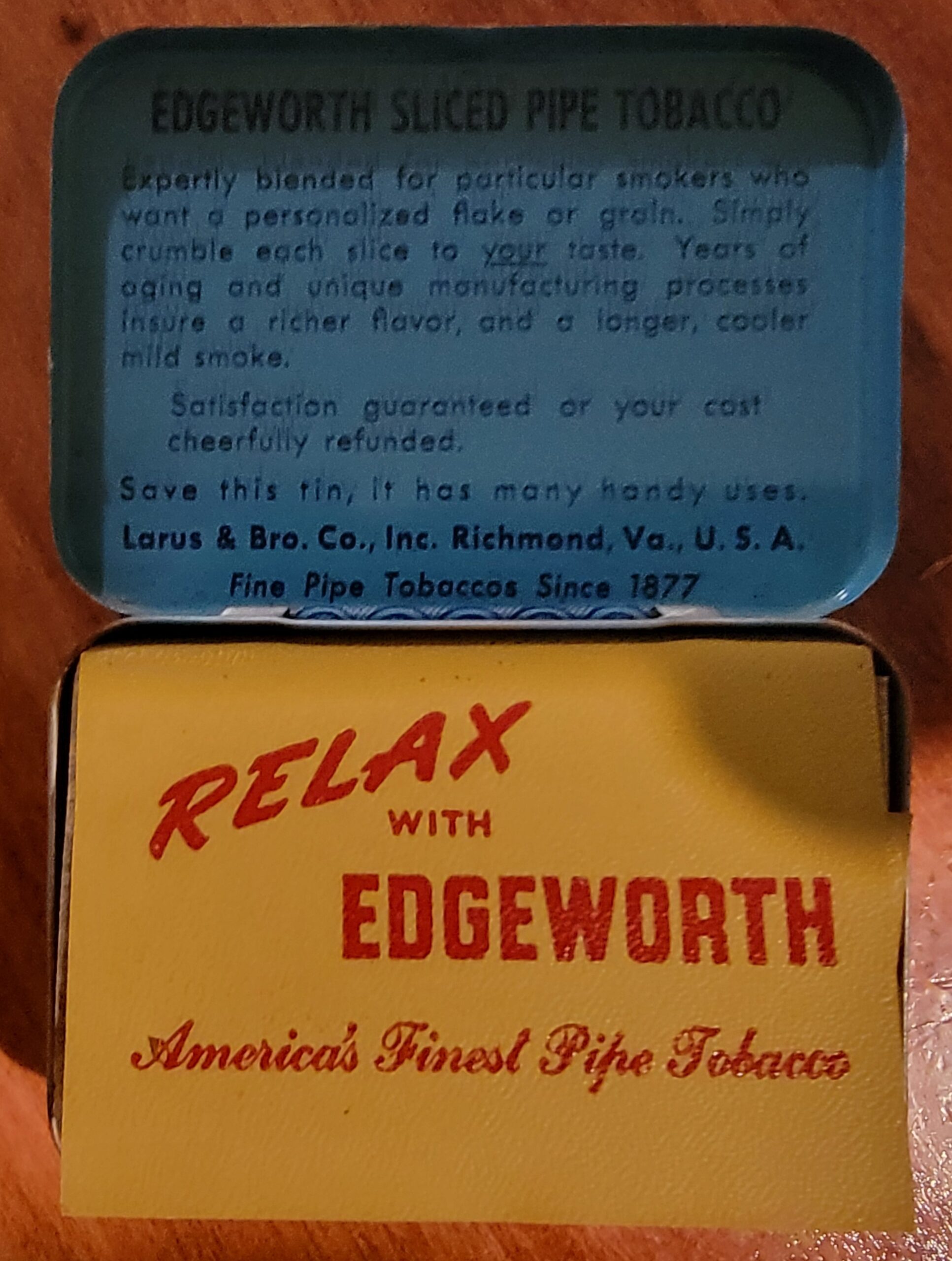 Original Edgeworth tobacco from 1920s to 1930s. Will need dehydration.