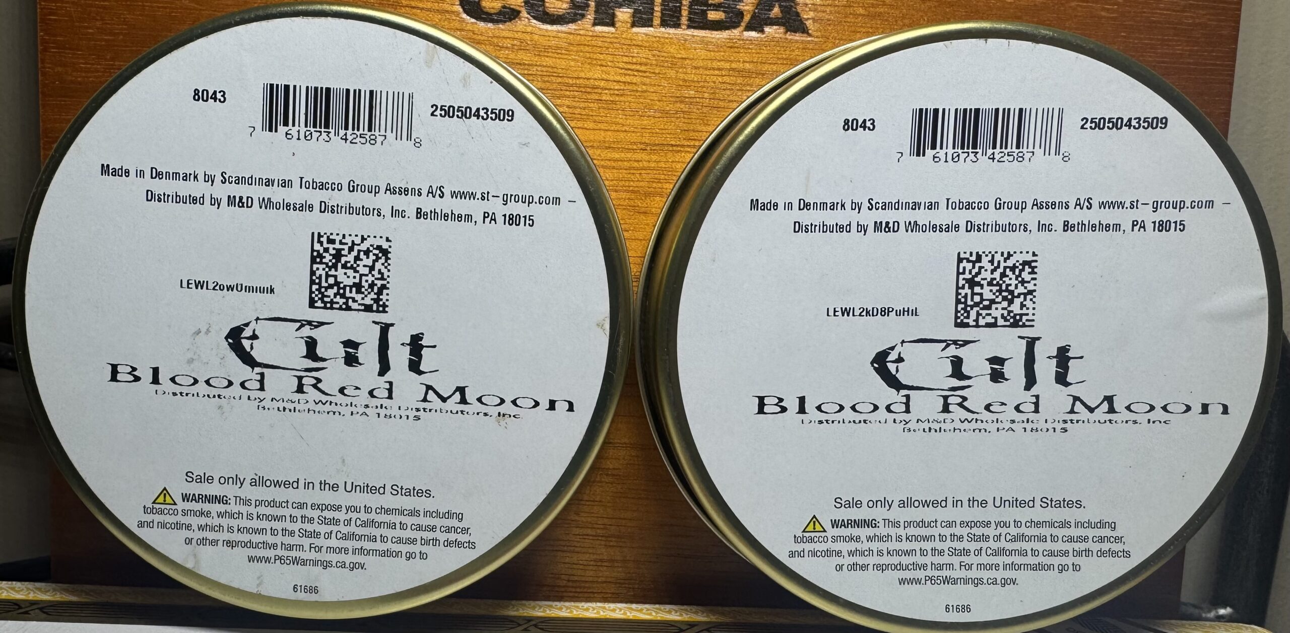Lot of 2 - Blood Red Moon Pipe Tobacco - Cult